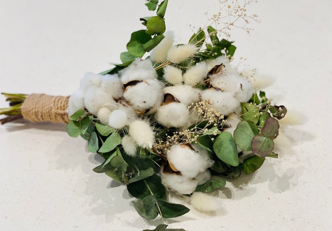 목화솜으로 했다. 부케 받을 친구가 있었는데 12명에 들지 못해 당일에 초대하지 못 했다. 언젠가 던져 줘야 하는데 그때까지 버틸 수 있는 꽃이어야 했다. 드라이플라워는 화학처리해서 싫었고 조화는 플라스틱이라 싫었다. 그에 반해 목화꽃은 잘만 보관하면 2년은 그대로 보존할 수 있다. 1년 뒤 결혼식 당시의 그 목화꽃으로 친구에게 토스했다.