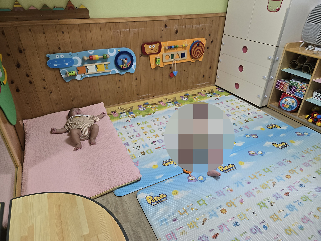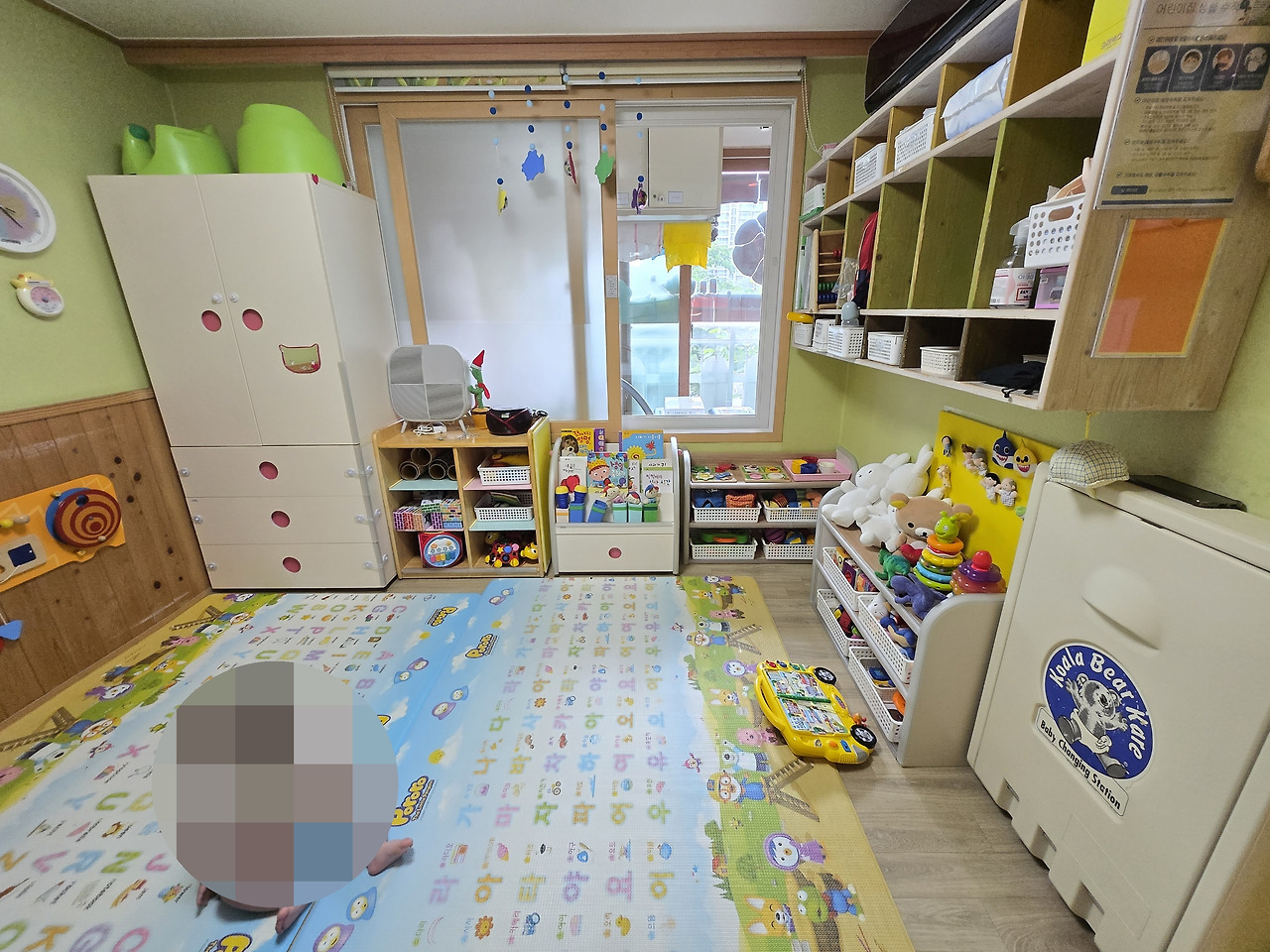 7명 아이들이 다니고 있는 작은 규모이고 제일 어린 친구가 11개월이다. 0세 반 정원은 3명인데 2명이 다니고 있고 양갱이는 그 아이들과 함께 지내게 될 것이다. 담당 교사는 1명이지만 0세 반은 손이 많이 가기 때문에 원장님과 함께 돌본다. 작은 규모로 운영하다 보니 심한 감기가 걸리지 않는 듯하다. 아이사랑 앱으로만 신청해야 하고 전날 예약이 가능하다. 1시간 맡겨도 엄마가 함께 적응시간을 가져볼 수 있다. 환경도 깔끔하고 선생님들도 좋아 보였다.