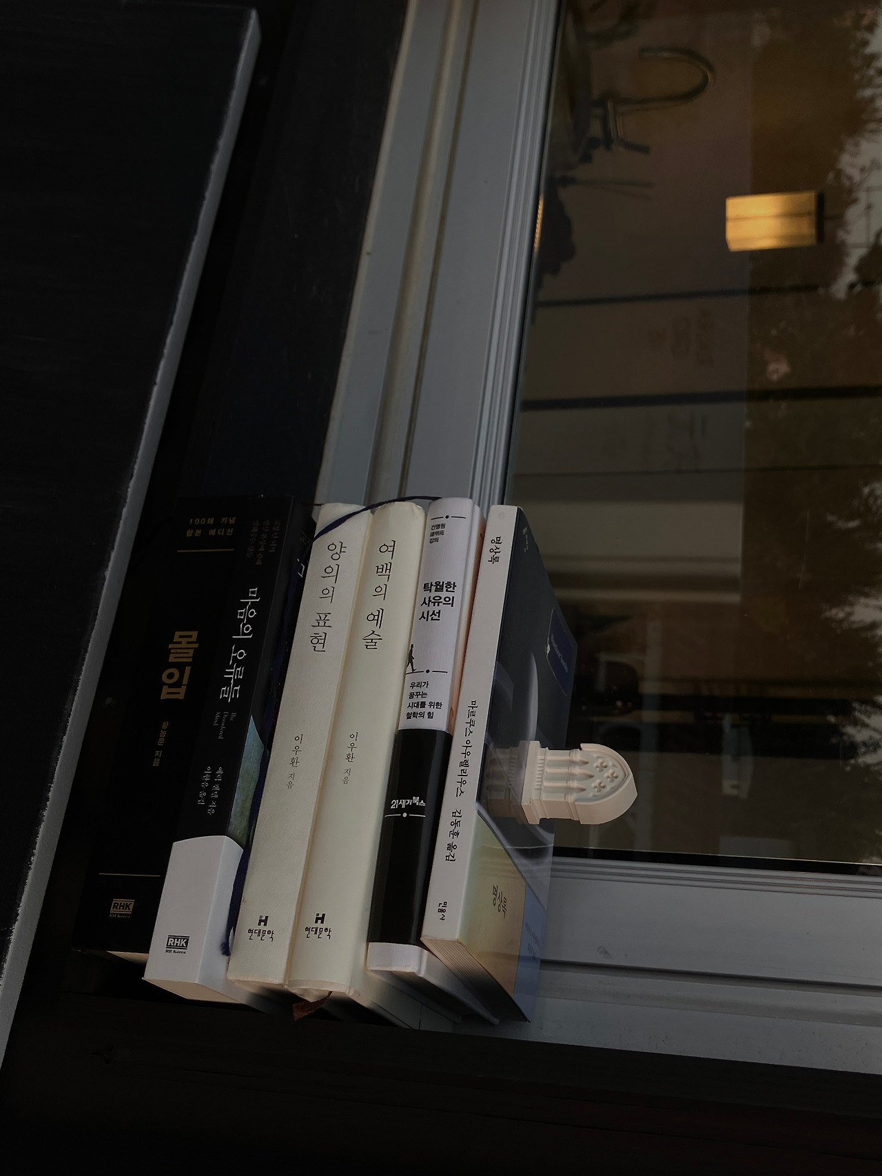 지금 이곳엔 나만이 존재한다. 외로움과 고독은 다르다. 이 정적은 쓸쓸함이 아니라 온전한 나를 마주하는 시간이다. 소란한 세상과 잠시 등을 돌리고, 감각 하나하나에 귀 기울인다. 시선은 노을에 머물고, 마음은 음악에 기대어 흐르며, 생각은 책의 문장에 천천히 스며든다.