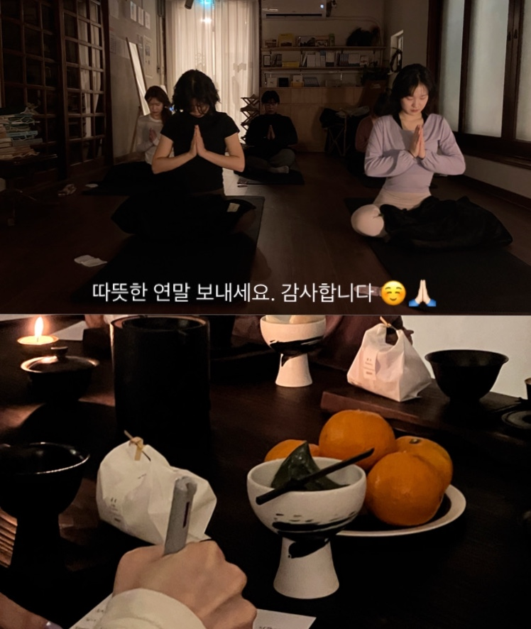 두 차례로 구성된 이번 프로그램은 바쁘게 달려온 한 해를 잠시 멈추어 돌아보고, 새해의 방향을 정돈하는 시간이었다. 이 기회는 차원 대표님의 제안으로 시작되었다. 홍보물 제작부터 사진 촬영, 편집까지 섬세하게 도와주셨고, 무엇보다 수업 전반을 진심으로 존중하며 함께 준비해 주셨기에 참여자들에게 온전히 마음을 기울일 수 있었다. 한파 주의보가 내려진 날이라 온돌을 켜고, 히터의 바람이 건조하지 않도록 조절했다. 조명과 담요, 스팀 안대, 찻자리의 온도까지 작은 요소 하나도 허투루 두지 않았다. 이 따뜻한 손길들이 그저 ‘세심함’으로 머무르지 않고, 참여자들에게 온기처럼 전해지기를 바랐다.