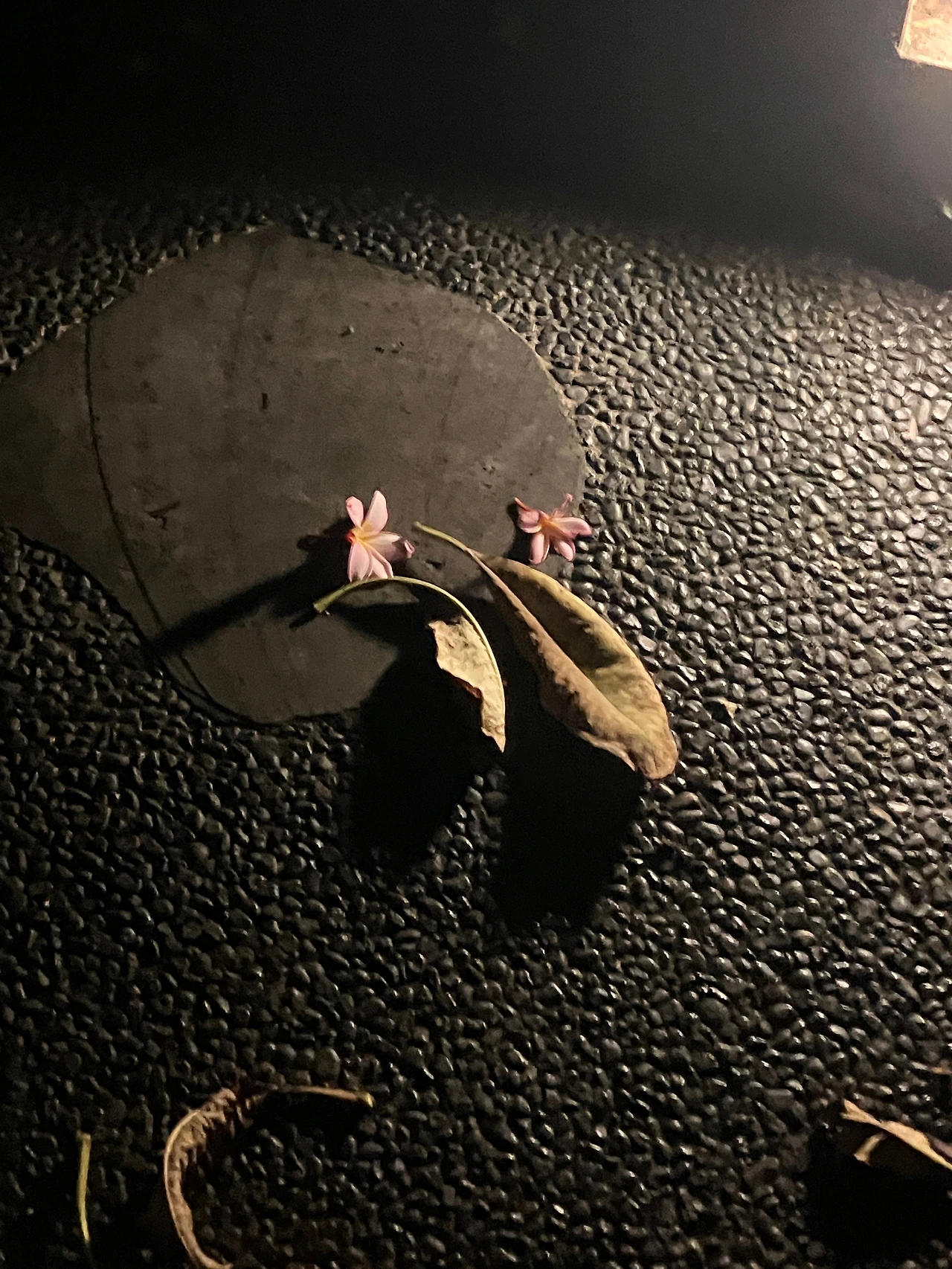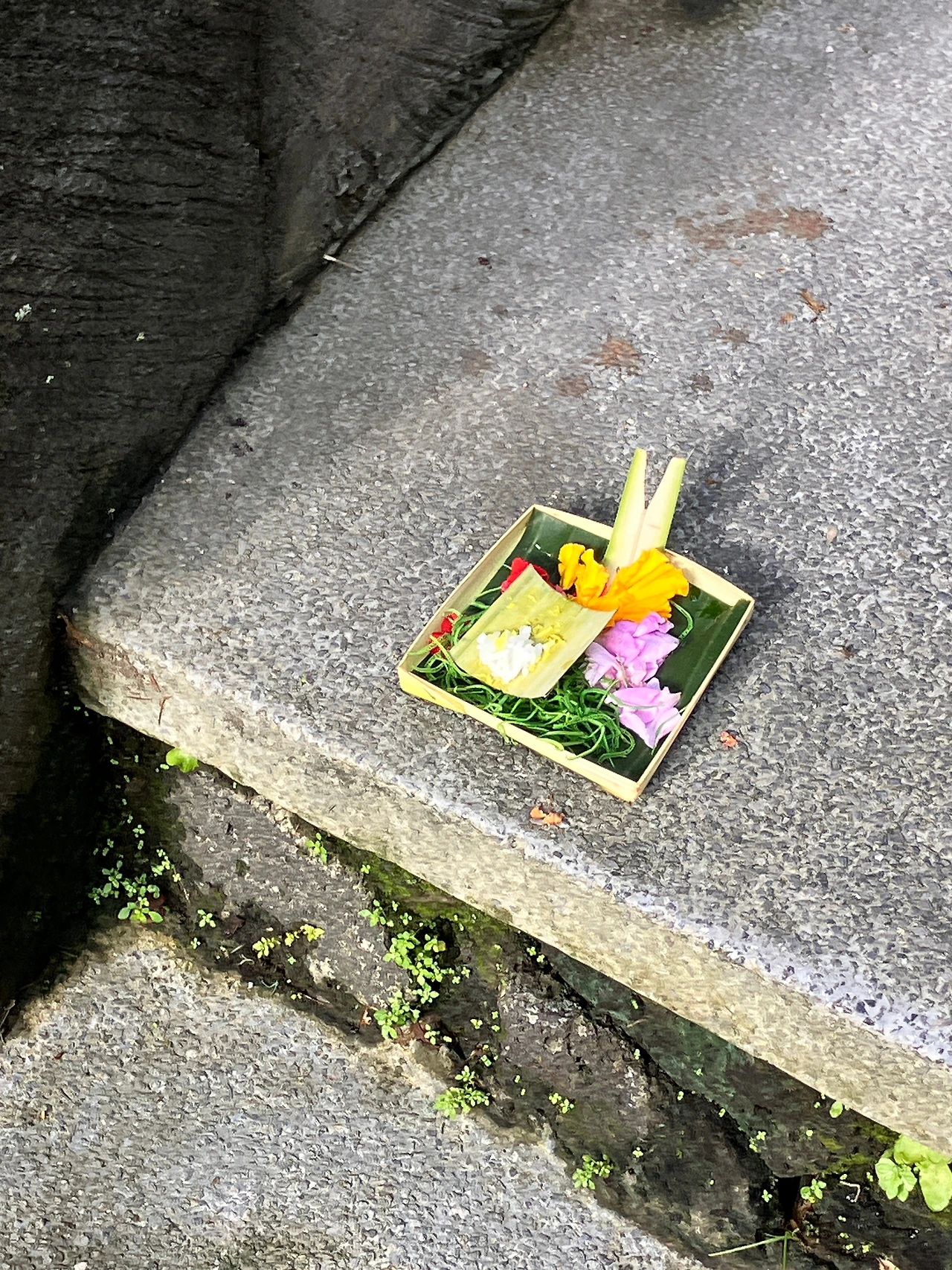 발리에서는 길을 걷는 것만으로도 감각이 열렸다. 한국에서 본 적 없는 꽃들과 나무들, 화려하면서도 귀여운 소형 꽃들, 상점과 집 앞마다 놓인 차낭사리(야자와 꽃으로 만든 신에게 바치는 공물)가 눈길을 끌었다. 한 송이, 향 하나에도 삶의 에너지가 느껴졌다. 나는 특히 캄보자 꽃에 매료되었다. 둥글고 단아한 꽃잎이 바람에 흩날리는 모습은, 마치 삶의 흐름을 천천히 따라가라는 듯한 메시지 같았다. 부겐베리아, 히비스커스, 헬리코니아, 아마빌리스가 어우러진 정원과, 저녁으로 물드는 보랏빛 하늘까지. 발리의 자연은 그 자체로 호흡과 마음을 가라앉히는 공간이었다.