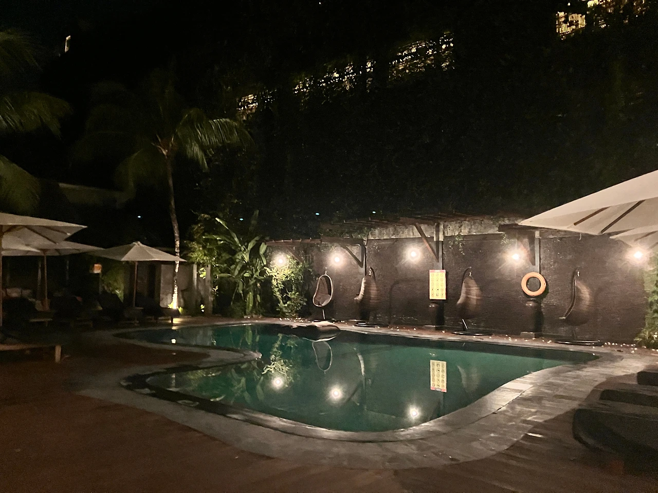 드디어 도착한 첫 숙소, 카자네 무아. 문을 여는 순간 “와, 이게 진짜 발리구나!”라는 감탄이 절로 나왔다. 도시 호텔과는 전혀 다른 세계였다. 물소리, 나뭇잎, 향기로운 꽃들이 나를 맞이했다. 마치 정글 속에 숨은 작은 세계 같았다. 숙소는 호텔 객실이 아니라 작은 펜션처럼 독립된 빌라였다. 마치 자연 속에 집 하나를 선물 받은 듯했다. 두 눈이 커진 채 이곳저곳을 둘러보며 놀람과 경이로움이 쏟아졌다. 자다 깬 혜수쌤과 간단히 인사를 나누고, 뜨거운 물에 몸을 담근 후 침대에 눕자 노곤한 피로가 몰려왔다. 여전히 실감이 나지 않았다. ‘나, 지금 발리에 있다니’ 그렇게 발리의 첫날밤은 조용히 깊어갔다.