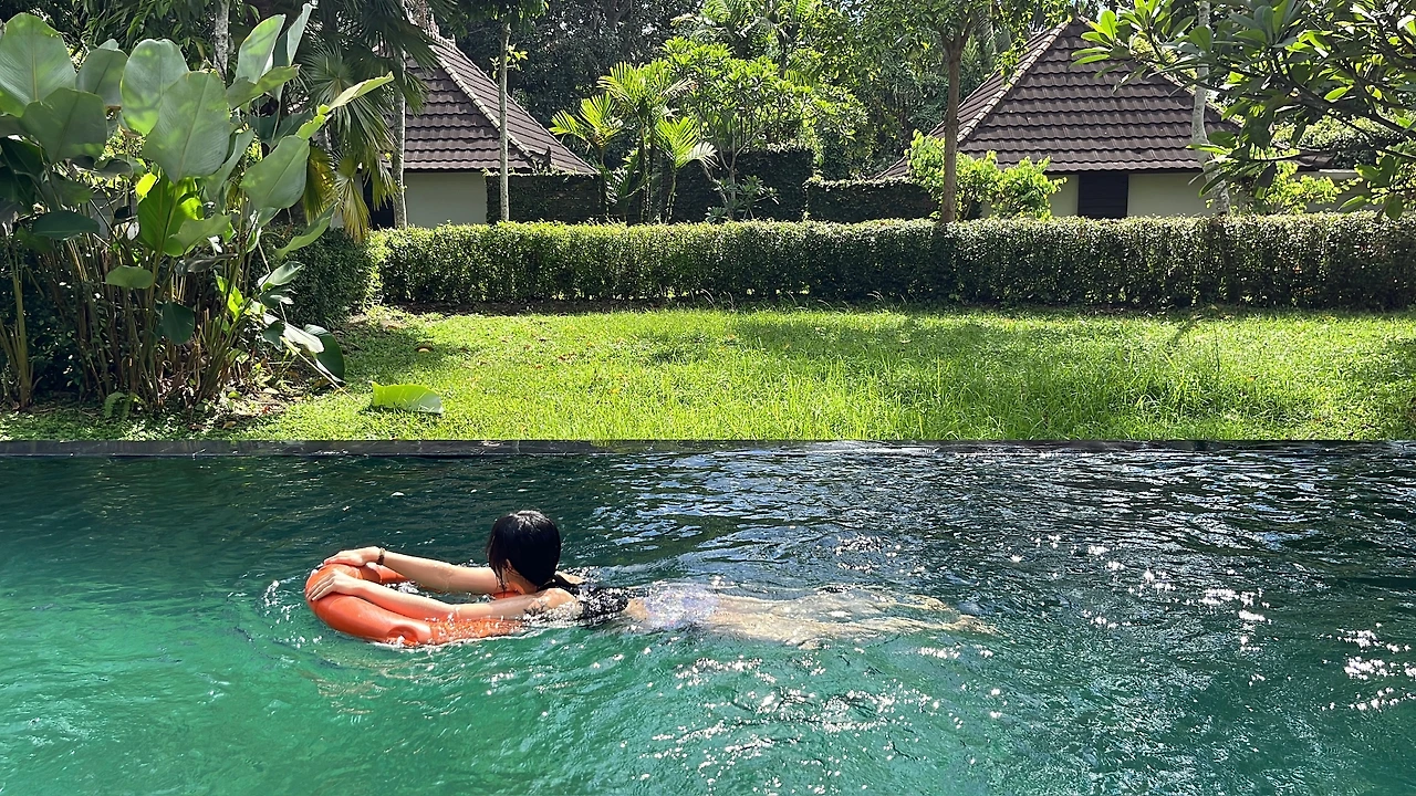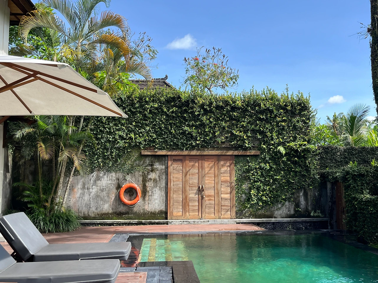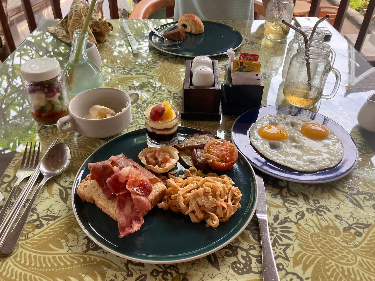 이튿날 아침, 커튼 사이로 들어오는 햇살이 나를 깨웠다. 눈앞에 펼쳐진 풍경에 감탄하며, “자연 속에 산다”는 말이 무엇인지 단숨에 설명해 주었다. 꽃, 나무와 새소리가 어우러졌다. 그리고 우리만 사용할 수 있는 넓은 수영장이 펼쳐져 있었다. 배가 고파 조식을 먹으러 갔다. 호텔 조식은 따뜻한 티, 달콤한 빵, 요청 시 바로 만들어주는 에그베네딕트와 스크램블까지. 작은 행복이 가득했다. 발리의 음식이 나와 잘 맞았는지, 그날 이후로 레몬그라스 티와 발리 커피를 매일 즐기게 됐다. 혜수쌤과 “발리에선 잘 먹고, 잘 쉬고, 잘 놀자”는 약속을 나누며 웃었다.