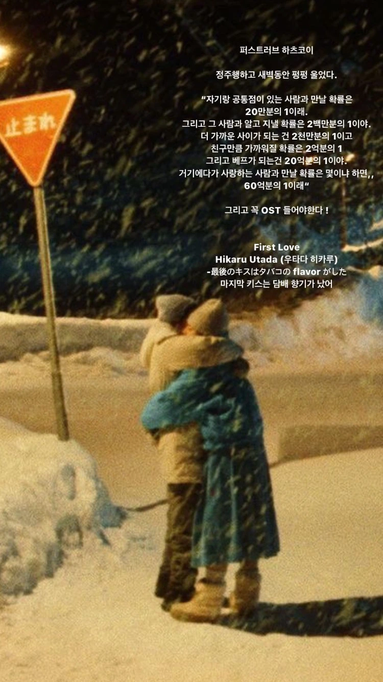 2023년 겨울부터, 쭉 한 해가 바뀌면서 겨울이 다가오면 나는 다시 하츠 코이를 정주행 하고 하루 종일 퍼스트 러브의 노래를 듣는다.