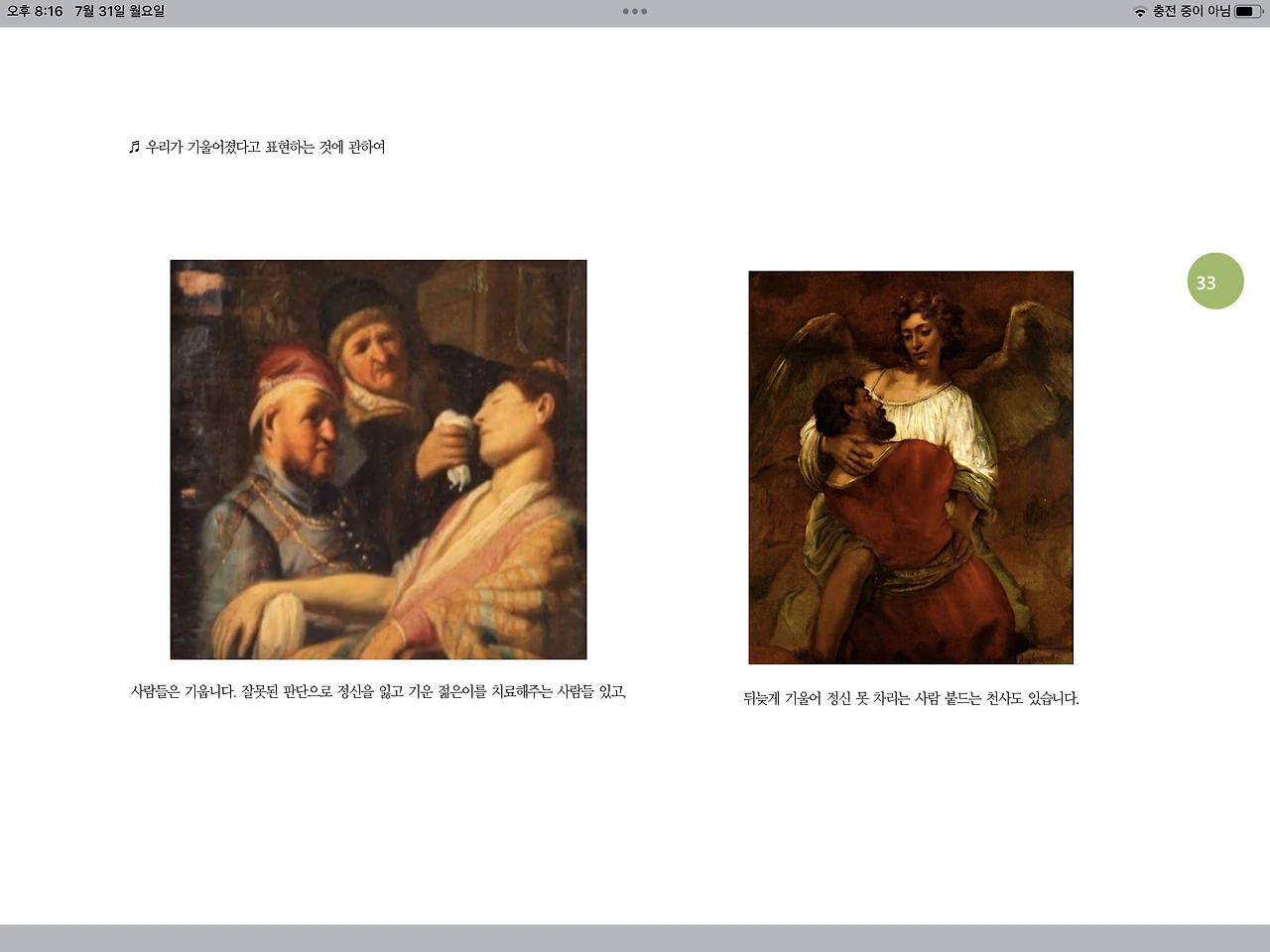 뒤늦게 기울어 정신 못 차리는 사람 붙드는 천사도 있습니다.