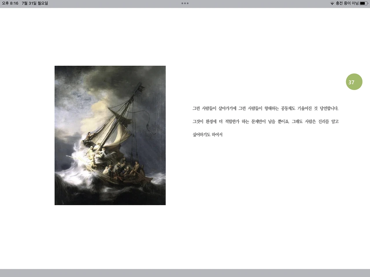 그런 사람들이 살아가기에 그런 사람들이 항해하는 공동체도 기울어진 것 당연합니다. 그것이 환경에 더 적합한가 하는 문제만이 남을 뿐이죠. 그래도 사람은 진리를 알고 싶어하기도 하여서