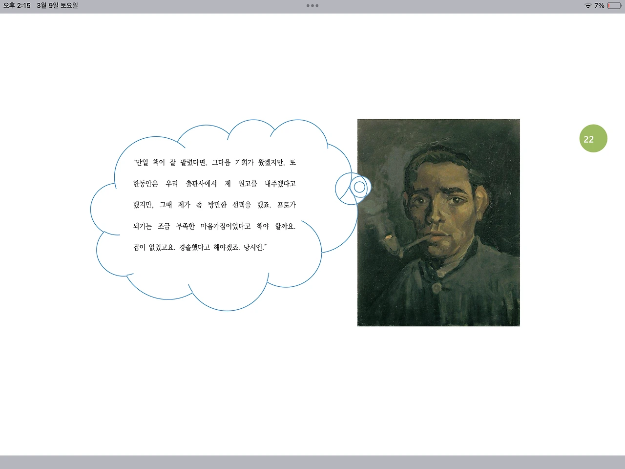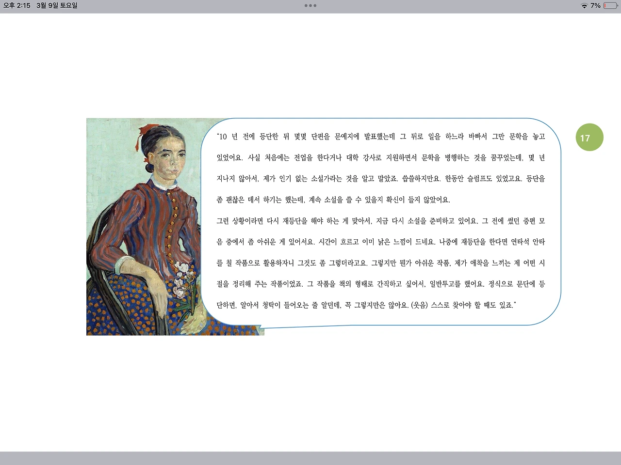 “만일 책이 잘 팔렸다면, 그다음 기회가 왔겠지만, 또 한동안은 우리 출판사에서 제 원고를 내주겠다고 했지만, 그때 제가 좀 방만한 선택을 했죠. 프로가 되기는 조금 부족한 마음가짐이었다고 해야 할까요. 겁이 없었고요. 경솔했다고 해야겠죠. 당시엔.”