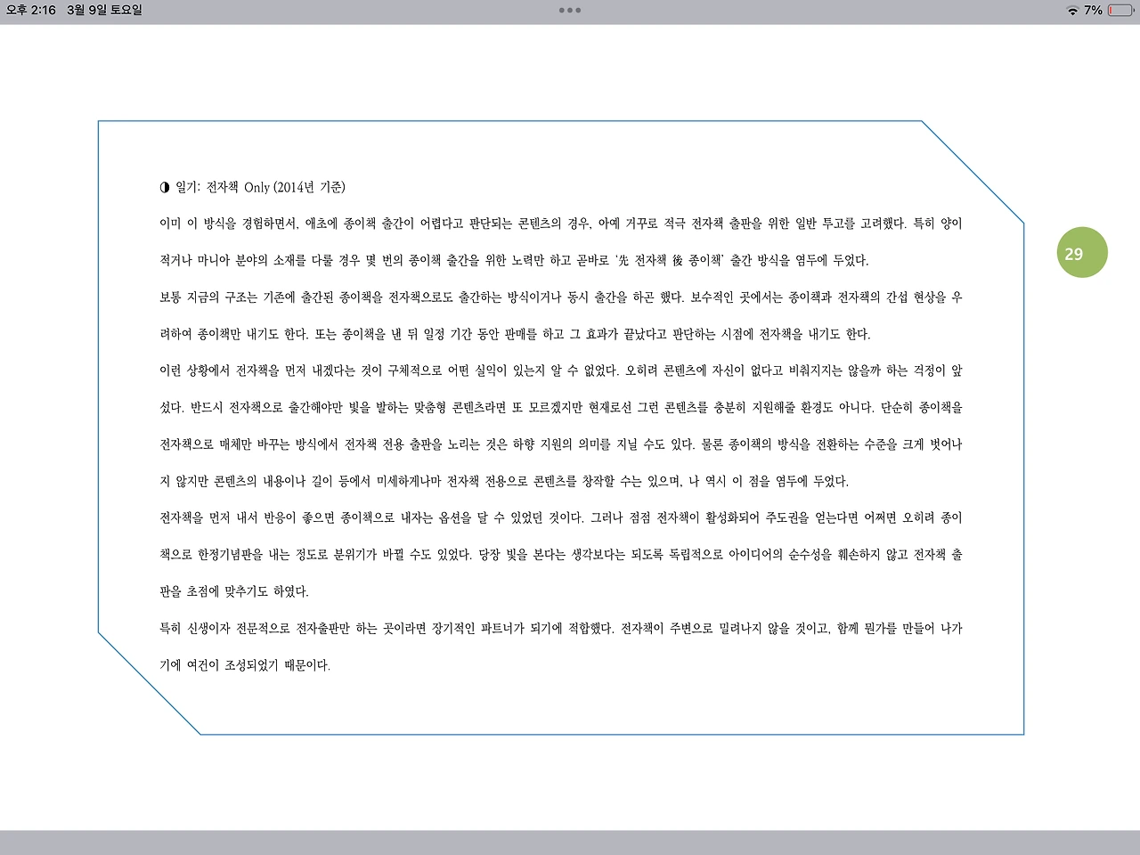 - 이미 이 방식을 경험하면서, 애초에 종이책 출간이 어렵다고 판단되는 콘텐츠의 경우, 아예 거꾸로 적극 전자책 출판을 위한 일반 투고를 고려했다.