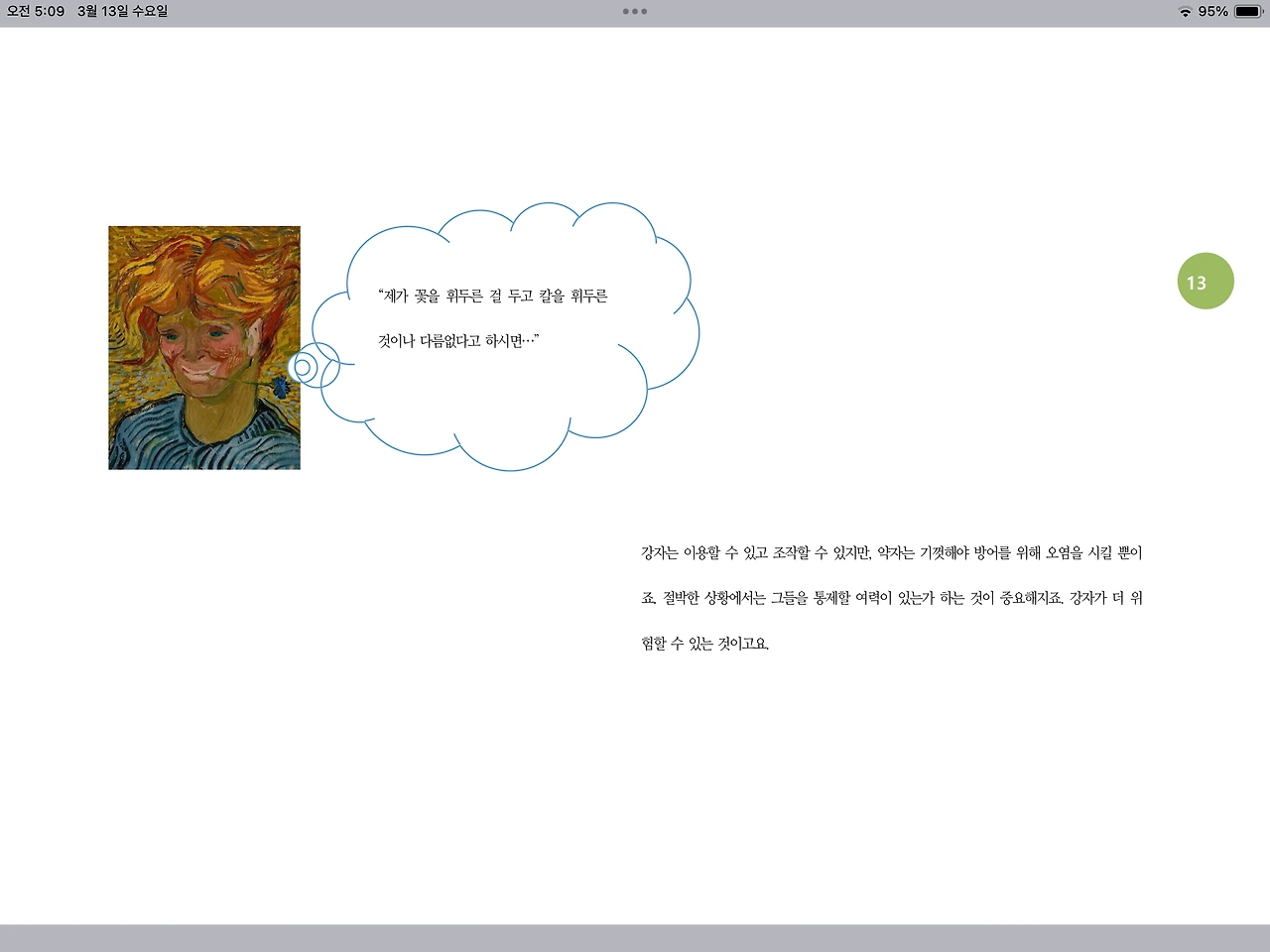 - 매거진 방식으로 작성하였습니다. 물론 실제로 다양한 저자를 섭외하지는 않고 단독으로 작업하였습니다. 매거진에서 다양한 글에 다양한 필자가 있기 마련인데, 여기서는 다중 정체성의 다른 인물을 연기하는 것처럼 고흐 이미지를 배치하고 여러 스타일의 글과 함께 구성하였습니다. 픽션 매거진이라고도 할 수 있으며 매거진 놀이로도 부를 수 있을 텐데, 이 원고의 경우 전체 흐름에선 사실과 경험을 토대로 하되 종종 일관된 방향성을 띠되 원활한 개진을 위하여 허구적 설정을 삽입하였습니다. 대체로 경험적 정보로 이해하셔도 무방합니다.