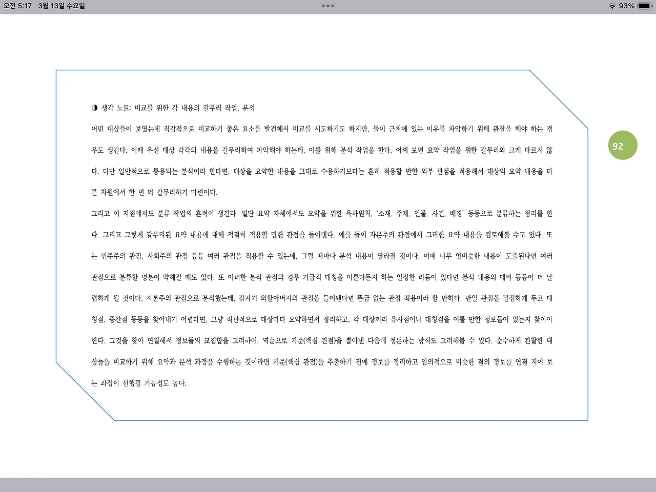 ◑ 생각 노트: 비교를 위한 각 내용의 갈무리 작업, 분석