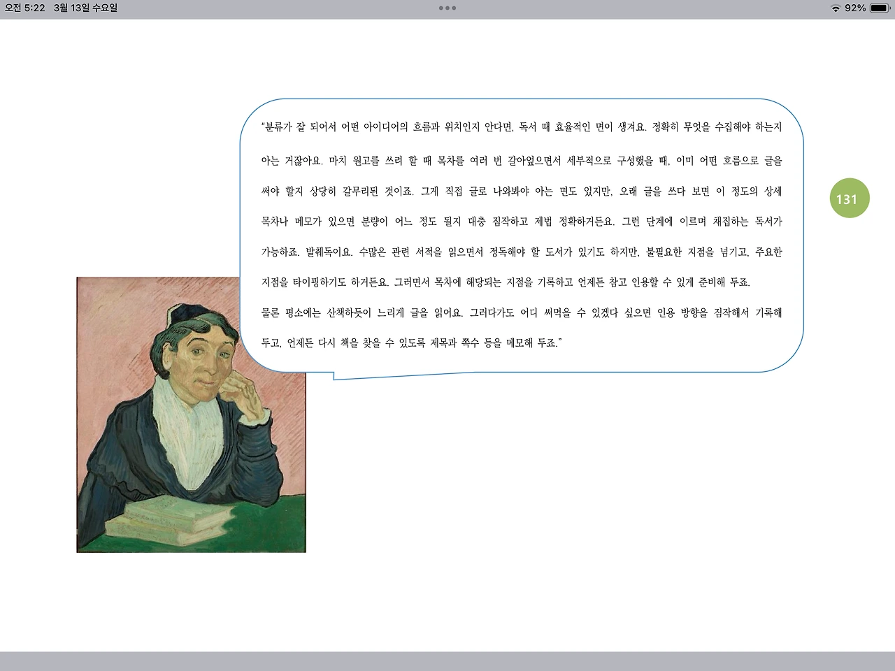 물론 평소에는 산책하듯이 느리게 글을 읽어요. 그러다가도 어디 써먹을 수 있겠다 싶으면 인용 방향을 짐작해서 기록해 두고, 언제든 다시 책을 찾을 수 있도록 제목과 쪽수 등을 메모해 두죠.”