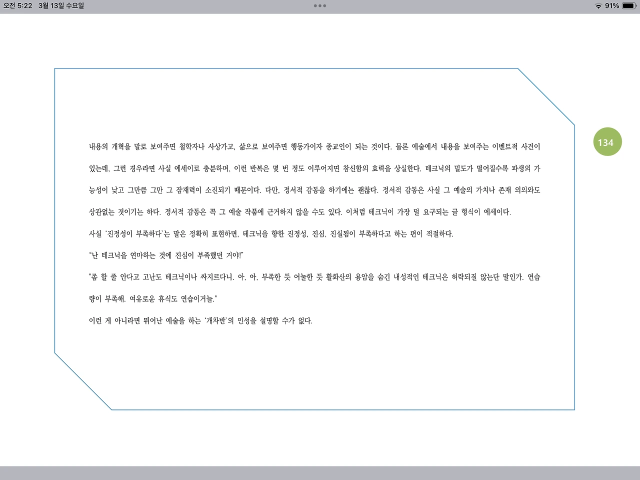 "좀 할 줄 안다고 고난도 테크닉이나 싸지르다니. 아, 아, 부족한 듯 어눌한 듯 활화산의 용암을 숨긴 내성적인 테크닉은 허락되질 않는단 말인가. 연습량이 부족해. 여유로운 휴식도 연습이거늘."