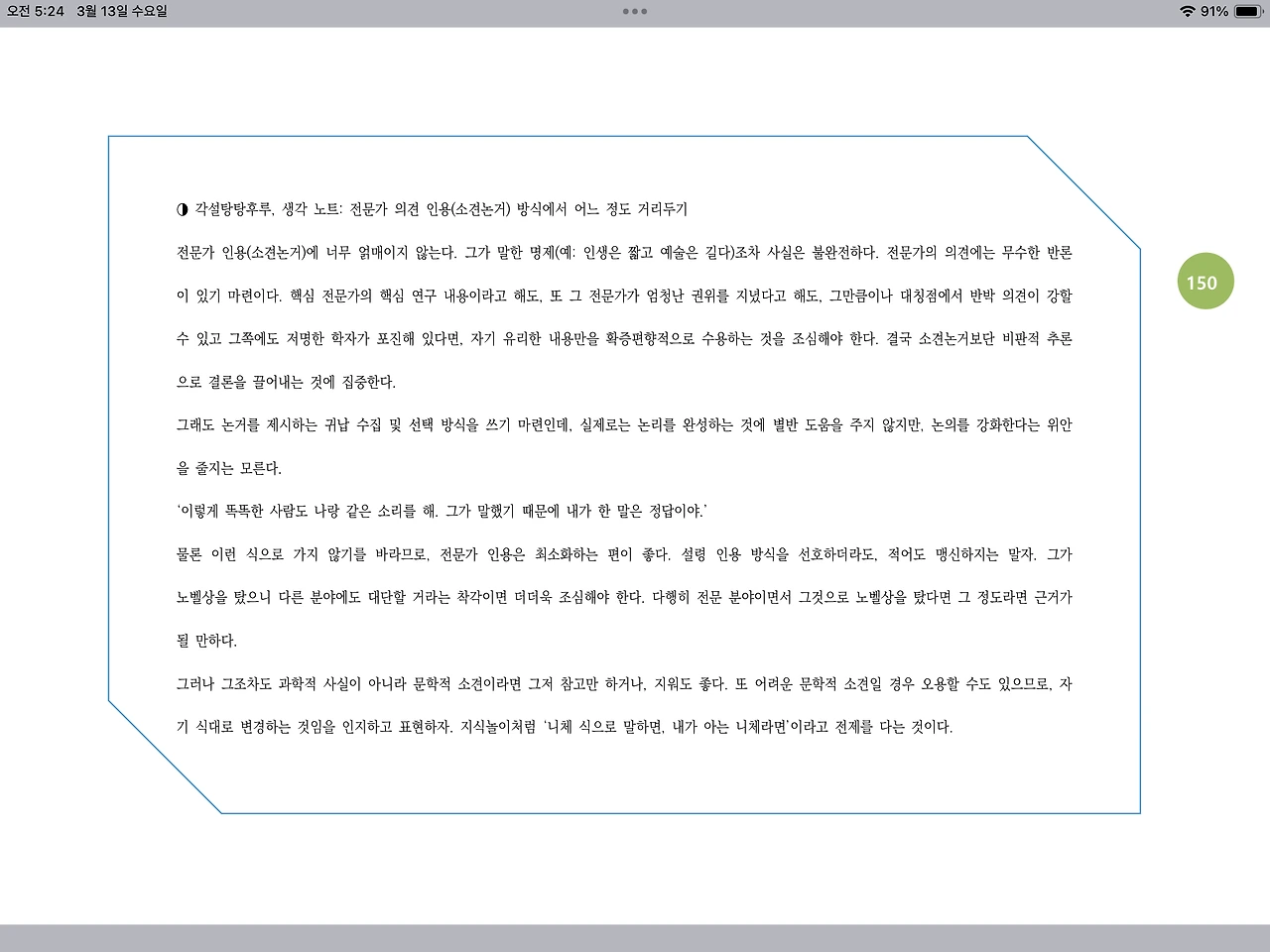 ◑ 각설탕탕후루, 생각 노트: 전문가 의견 인용(소견논거) 방식에서 어느 정도 거리두기