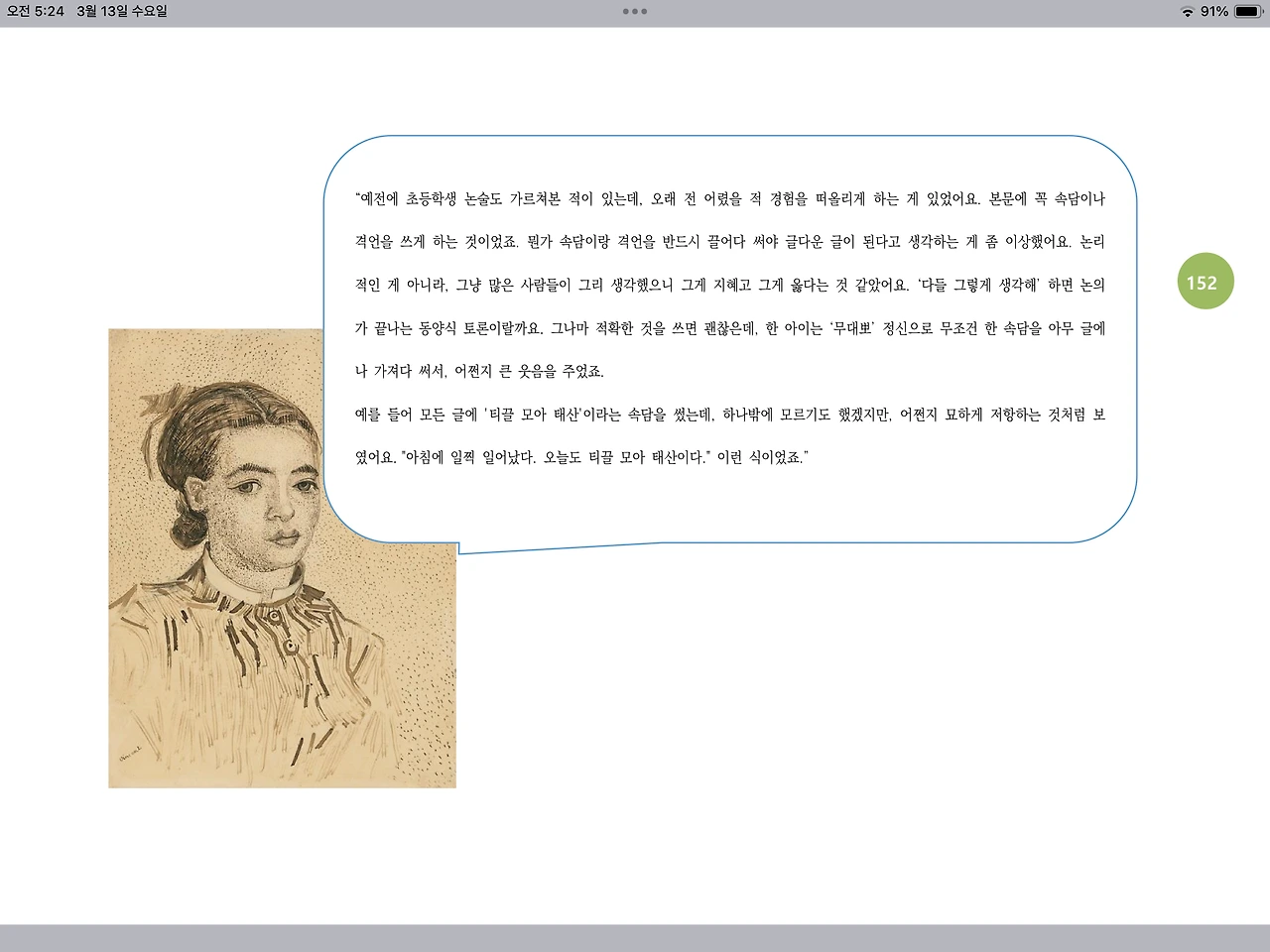 “예전에 초등학생 논술도 가르쳐본 적이 있는데, 오래 전 어렸을 적 경험을 떠올리게 하는 게 있었어요. 본문에 꼭 속담이나 격언을 쓰게 하는 것이었죠. 뭔가 속담이랑 격언을 반드시 끌어다 써야 글다운 글이 된다고 생각하는 게 좀 이상했어요. 논리적인 게 아니라, 그냥 많은 사람들이 그리 생각했으니 그게 지혜고 그게 옳다는 것 같았어요. ‘다들 그렇게 생각해’ 하면 논의가 끝나는 동양식 토론이랄까요. 그나마 적확한 것을 쓰면 괜찮은데, 한 아이는 ‘무대뽀’ 정신으로 무조건 한 속담을 아무 글에나 가져다 써서, 어쩐지 큰 웃음을 주었죠.