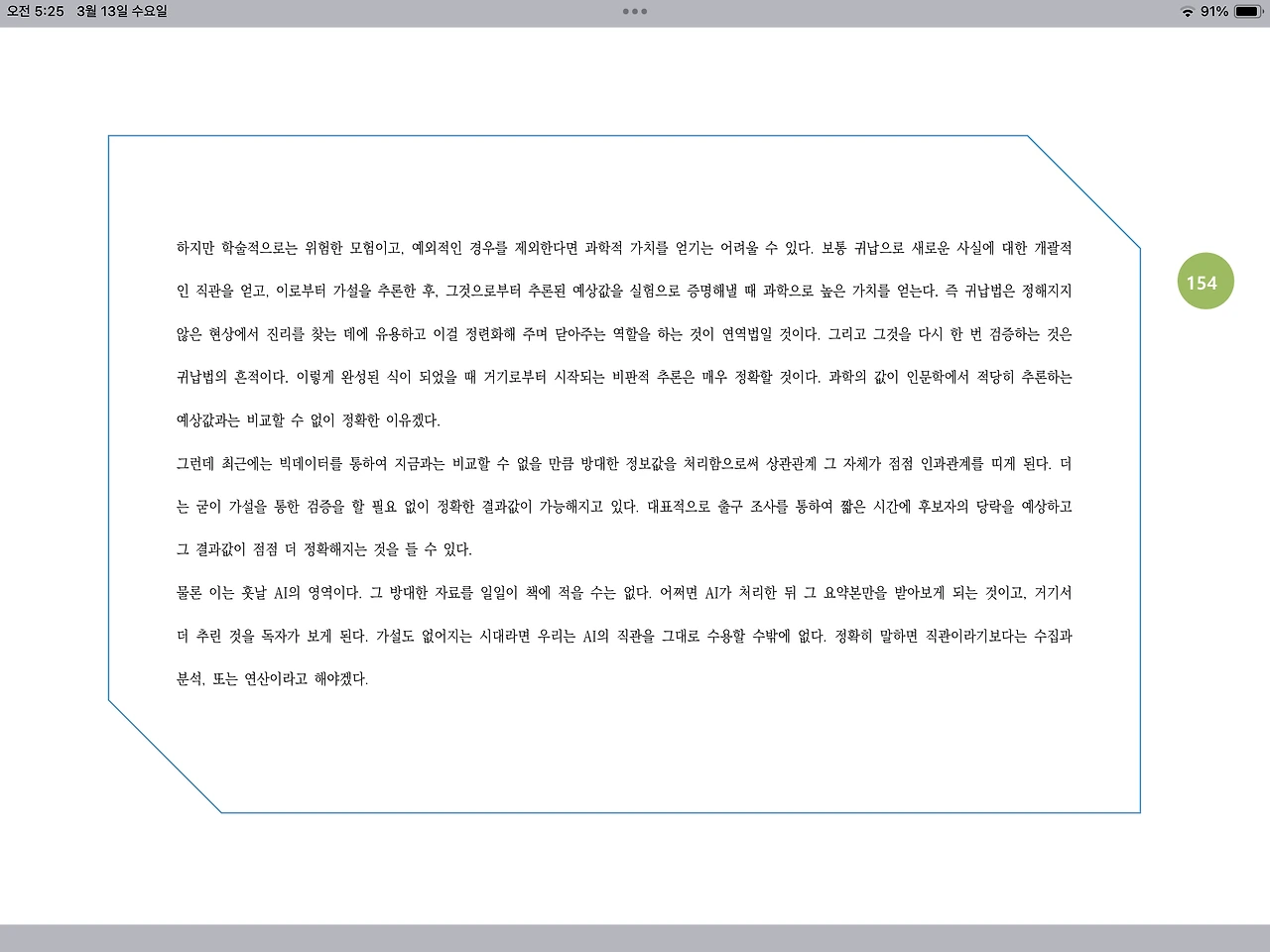 물론 이는 훗날 AI의 영역이다. 그 방대한 자료를 일일이 책에 적을 수는 없다. 어쩌면 AI가 처리한 뒤 그 요약본만을 받아보게 되는 것이고, 거기서 더 추린 것을 독자가 보게 된다. 가설도 없어지는 시대라면 우리는 AI의 직관을 그대로 수용할 수밖에 없다. 정확히 말하면 직관이라기보다는 수집과 분석, 또는 연산이라고 해야겠다.