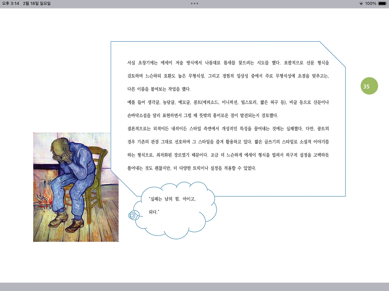 - 매거진 방식으로 작성하였습니다. 물론 실제로 다양한 저자를 섭외하지는 않고 단독으로 작업하였습니다. 매거진에서 다양한 글에 다양한 필자가 있기 마련인데, 여기서는 다중 정체성의 다른 인물을 연기하는 것처럼 고흐 이미지를 배치하고 여러 스타일의 글과 함께 구성하였습니다. 픽션 매거진이라고도 할 수 있으며 매거진 놀이로도 부를 수 있을 텐데, 이 원고의 경우 전체 흐름에선 사실과 경험을 토대로 하되 종종 일관된 방향성을 띠되 원활한 개진을 위하여 허구적 설정을 삽입하였습니다. 대체로 경험적 정보로 이해하셔도 무방합니다.