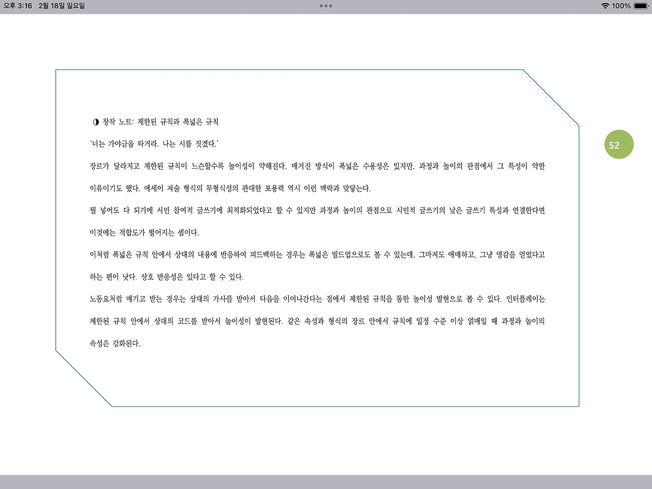 ◑ 창작 노트: 제한된 규칙과 폭넓은 규칙