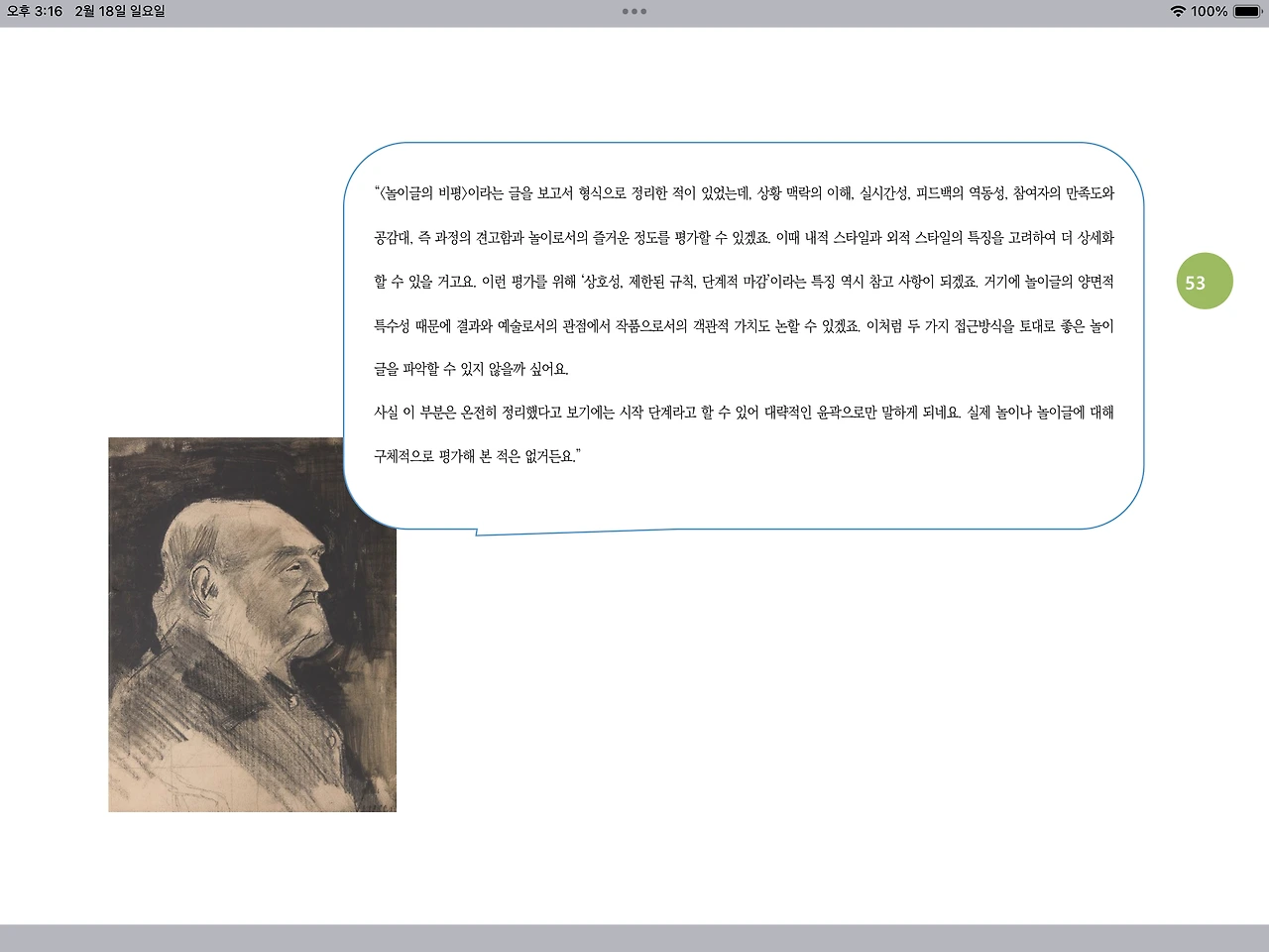 사실 이 부분은 온전히 정리했다고 보기에는 시작 단계라고 할 수 있어 대략적인 윤곽으로만 말하게 되네요. 실제 놀이나 놀이글에 대해 구체적으로 평가해 본 적은 없거든요.”