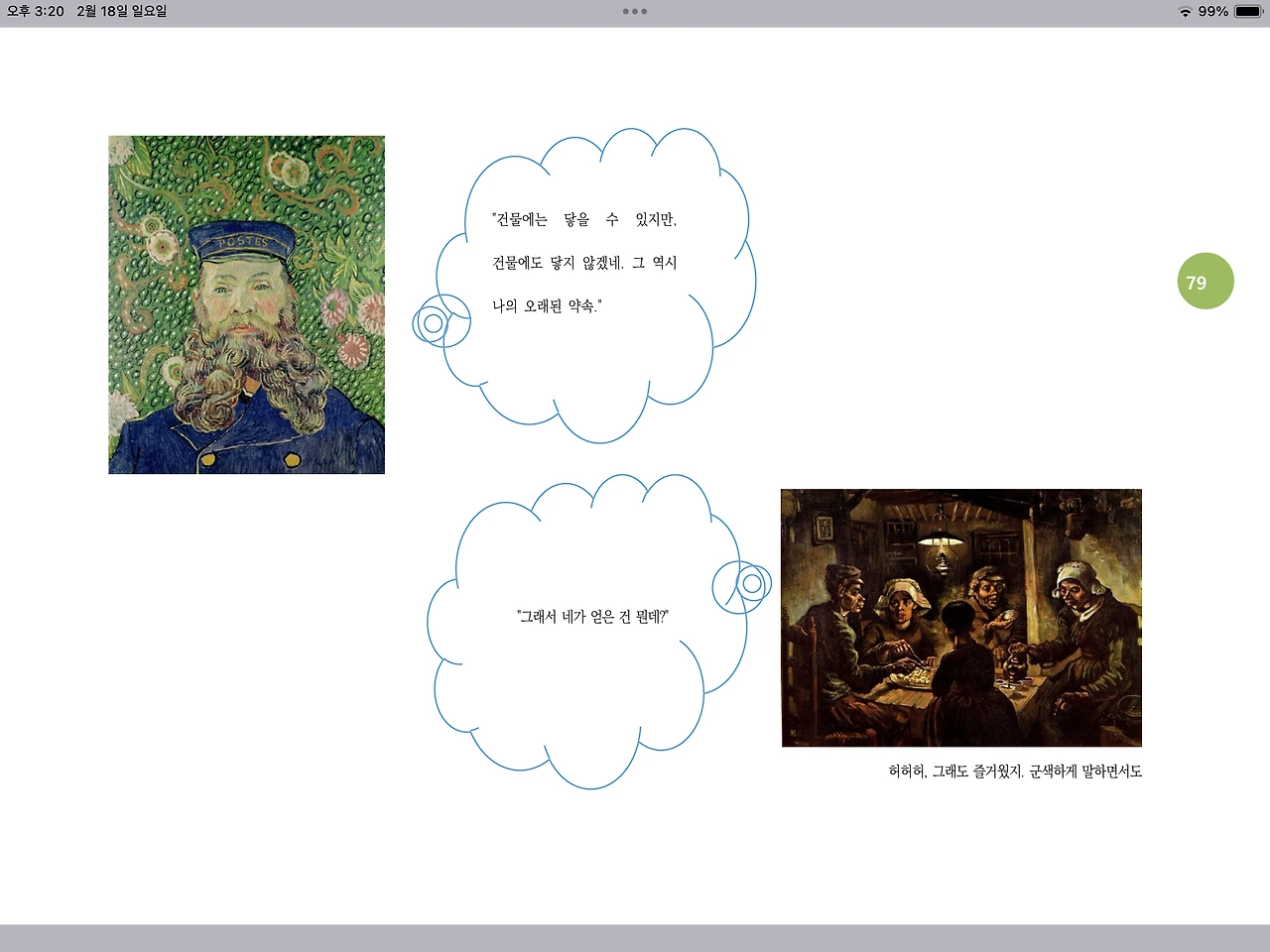 - 매거진 방식으로 작성하였습니다. 물론 실제로 다양한 저자를 섭외하지는 않고 단독으로 작업하였습니다. 매거진에서 다양한 글에 다양한 필자가 있기 마련인데, 여기서는 다중 정체성의 다른 인물을 연기하는 것처럼 고흐 이미지를 배치하고 여러 스타일의 글과 함께 구성하였습니다. 픽션 매거진이라고도 할 수 있으며 매거진 놀이로도 부를 수 있을 텐데, 이 원고의 경우 전체 흐름에선 사실과 경험을 토대로 하되 종종 일관된 방향성을 띠되 원활한 개진을 위하여 허구적 설정을 삽입하였습니다. 대체로 경험적 정보로 이해하셔도 무방합니다.