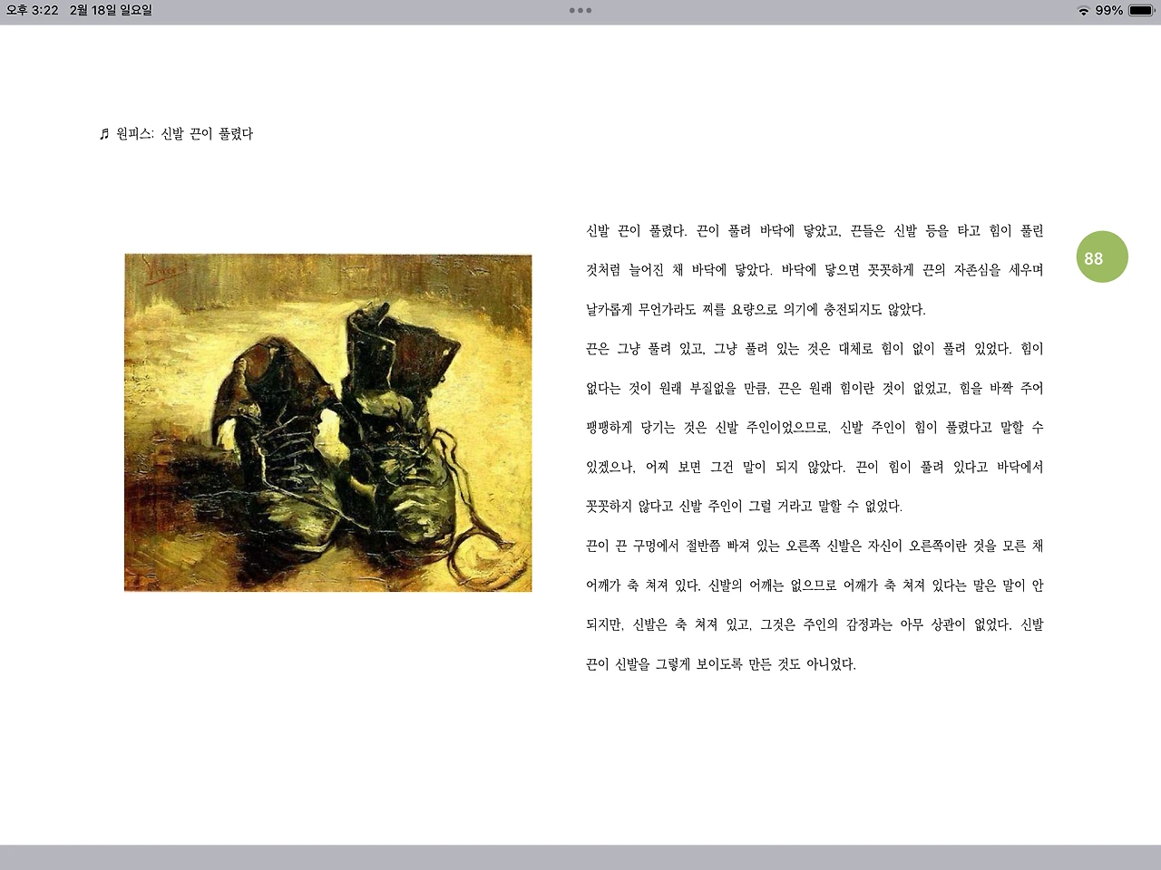 물론 이런 식으로 글을 늘려서 그림을 부가적으로 배치하는 방식에 합의한다고 해도, 한 가지 문제가 남았다. 연예인 이미지의 저작권 초상권 문제도 해결되었다고는 해도 그것으로 다 된 게 아니었다. 통념이라는 것이 있었다. 그림을 사랑하는 사람이라면 가벼운 이야기, 특히 놀이글이라는 방식으로 자신이 사랑하는 작품이 소모된다고 여길 수 있었다. 자기 그림도 아닌데, 그걸 저자의 창작적 요소보다 더 많이 쓰인다는 것을 기이하게 여겼다면, 이 역시 해결할 수 있었지만, 그러고도 그 명화에 어울릴 만한 무게감을 지닌 작품인지도 중요하게 여겨질 수 있었다. 명화를 썼기 때문에 이야기의 무게가 결정되고 그것을 감당해야 하는 문제가 있었다. 적어도 초기에는 더 그렇다. 독자들이 이를 받아들일 시간이 적었다면, 통념을 무시하기는 어렵다. 그들이 받아들일 만한 무게감으로 이야기를 창작할 수 있을까 그 역시 관건이었다. 명작을 키치적으로 낭비한다고 합법적으로 치명적이진 않지만, 부정적인 인식을 불식할 책임감 정도는 있는 셈이다.