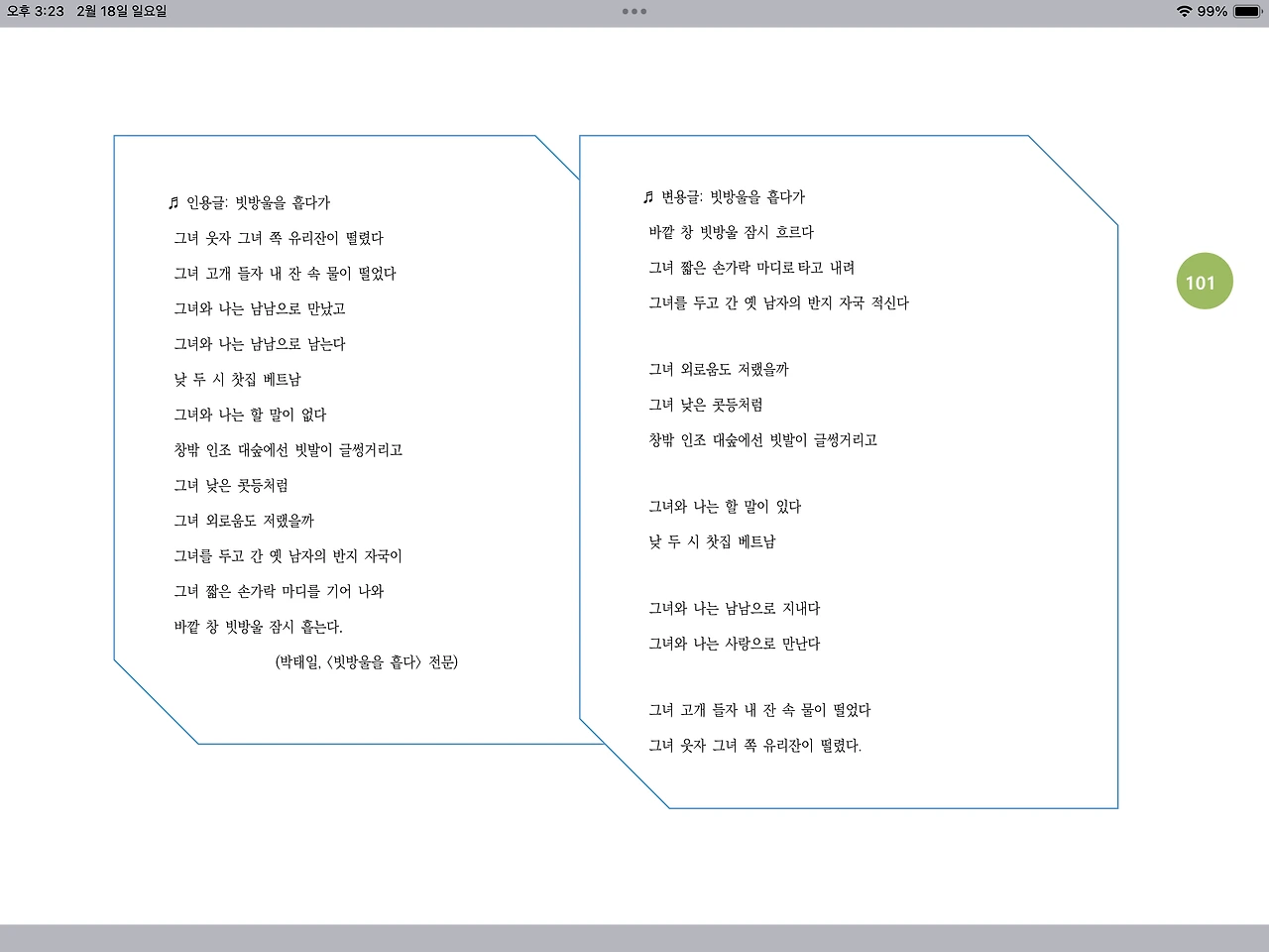 그녀 고개 들자 내 잔 속 물이 떨었다