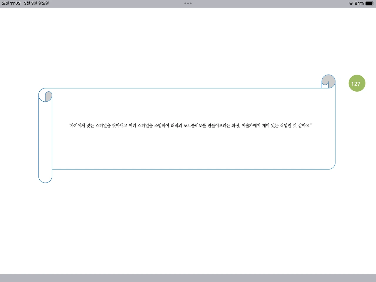 “자기에게 맞는 스타일을 찾아내고 여러 스타일을 조합하여 최적의 포트폴리오를 만들어보려는 과정, 예술가에게 재미 있는 작업인 것 같아요.”