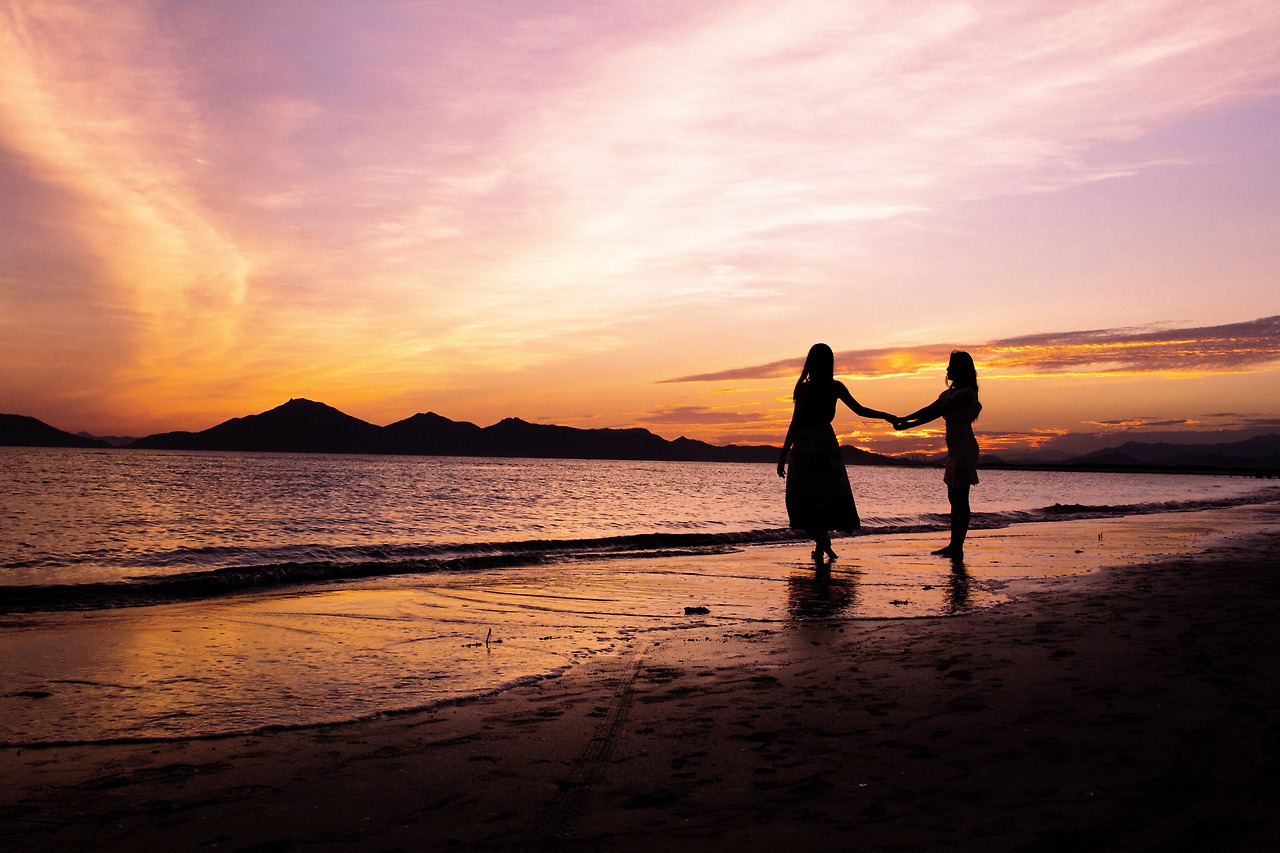서연은 눈물이 고이는 것 같아 오렌지빛 노을을 등지고 돌아서려다 다가오는 모래 위 발자국 소리에 고개 돌려 그쪽을 바라보았다.