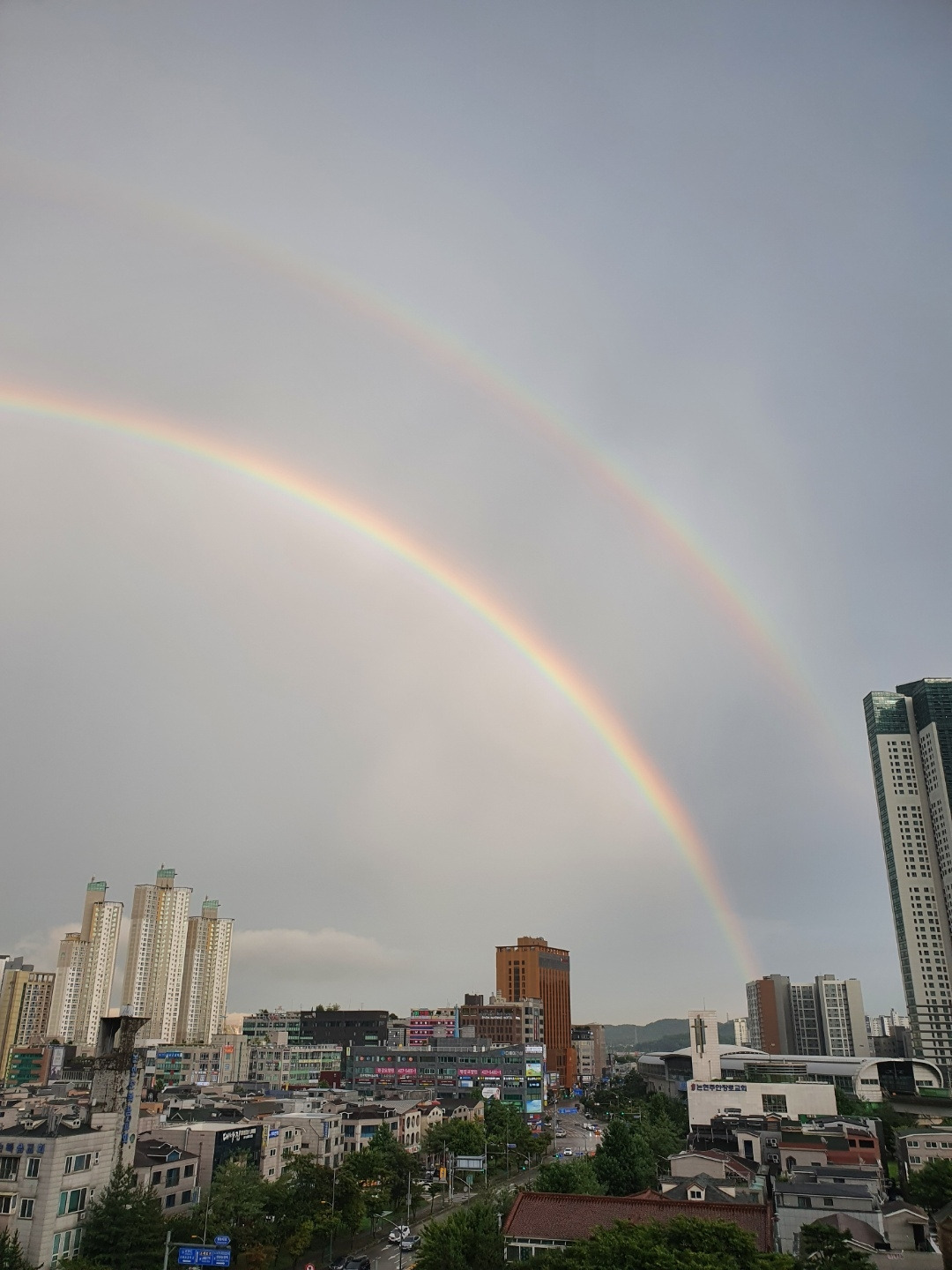 멀리서 보란듯이 일곱 색깔을 수 놓는다.