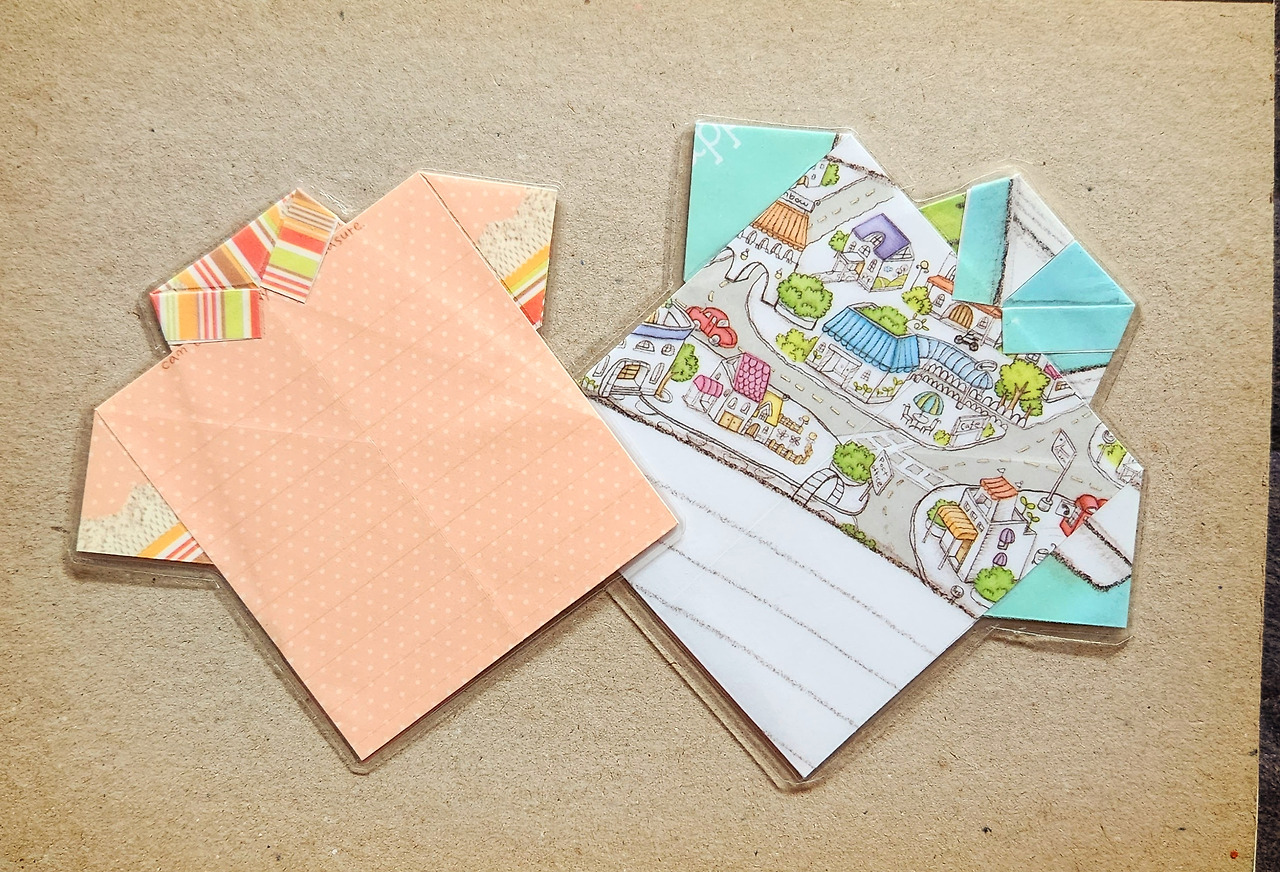 한창 책 읽기를 할 때 예쁜 편지지를 티셔츠 모양으로 접어 두꺼운 책 사이에 끼워 납작하게 한 다음 하나하나 코팅해 만든 책갈피였습니다.