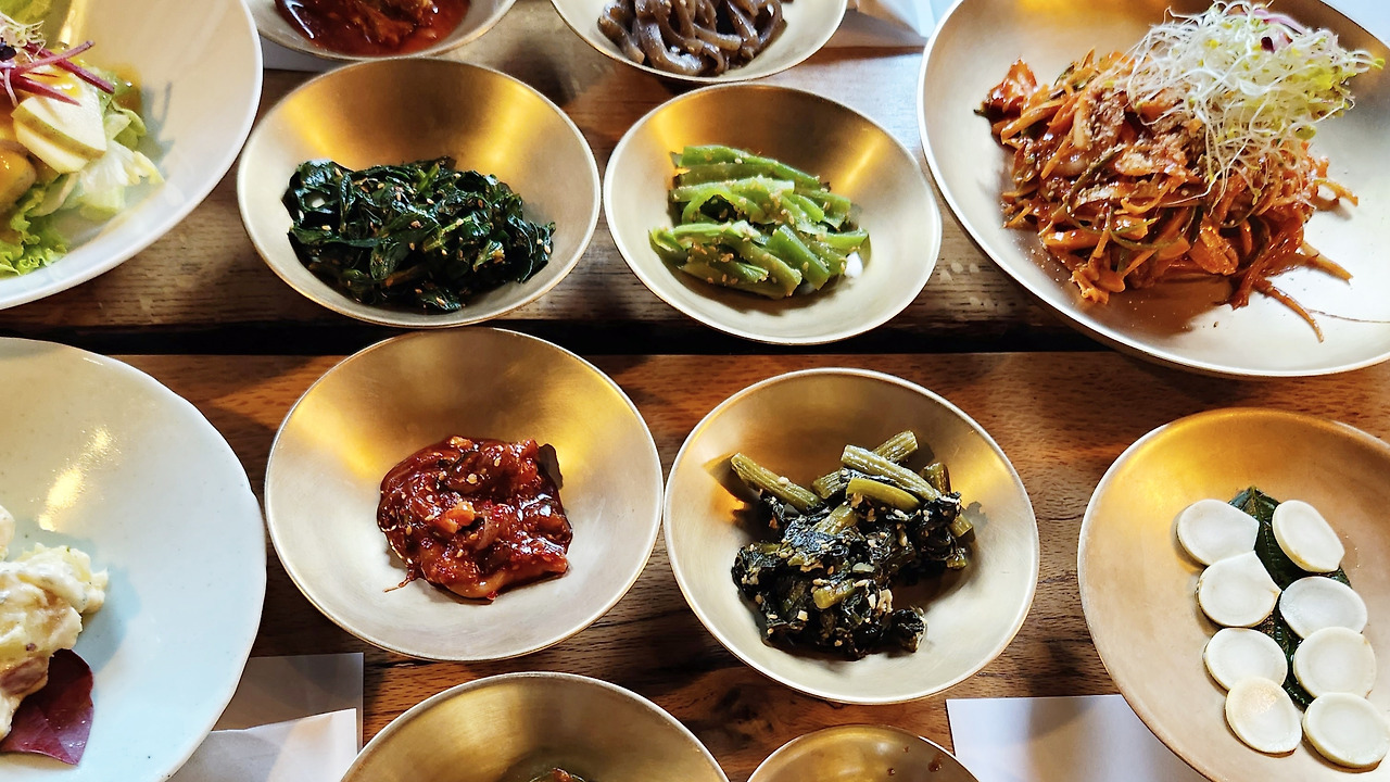 테이블 위에 반찬 서너 가지와 찌개가 놓였다.