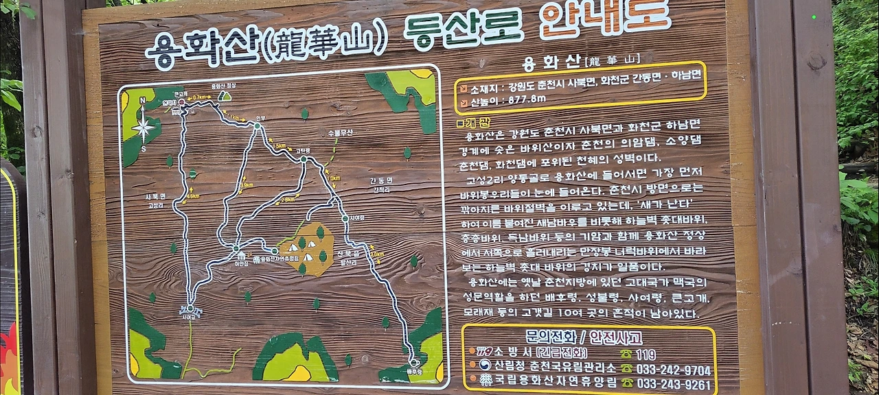 *큰고개~용화산~고탄령~사여령~배후령~1,2,3,4봉~오봉산~구멍바위~청평사, 11km 7시간의 1일 2산이었습니다.