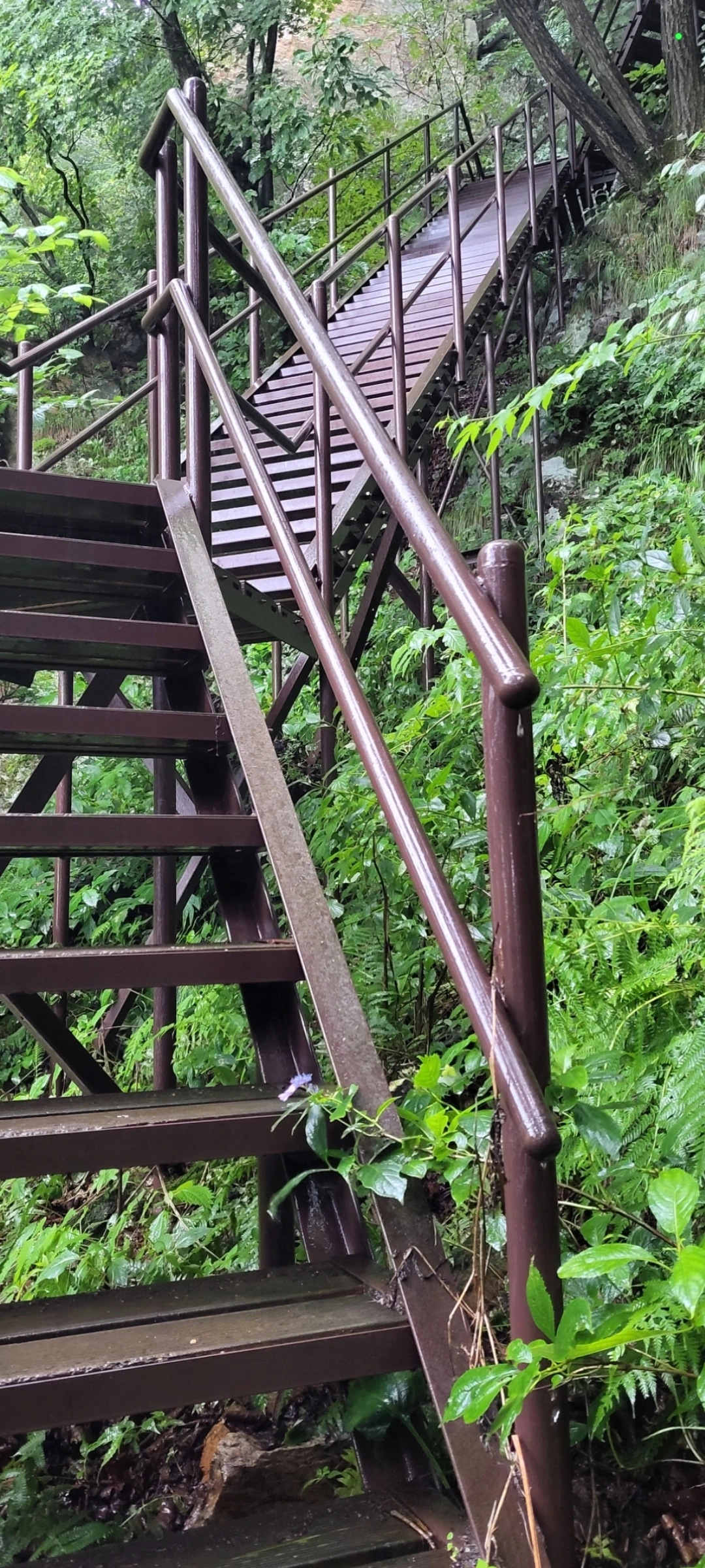 비에 젖은 금수산과 등산로