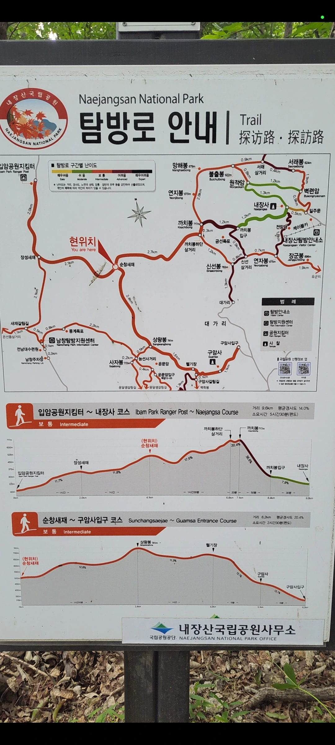 *대가저수지~내장산정상(신선봉)~까치봉삼거리~순창새재~능선사거리~백암산정상(상왕봉)~백양계곡~백양사 총14.3km 6시간 30분