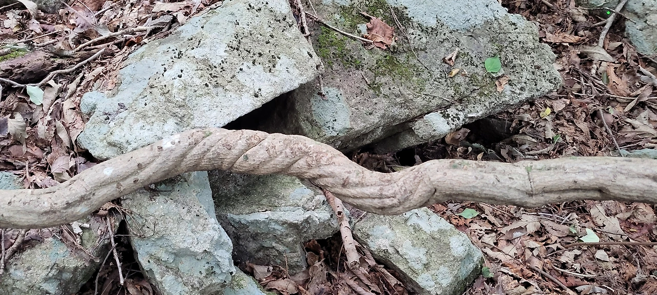 깊은 숲 한참을 이어지는 시멘트 포장도로