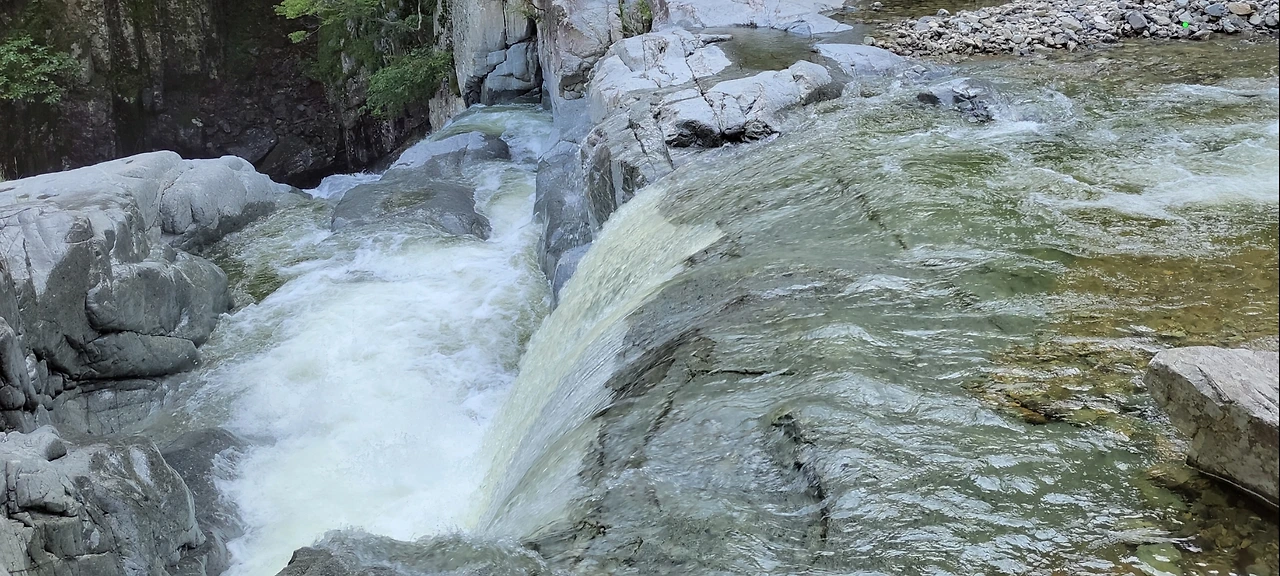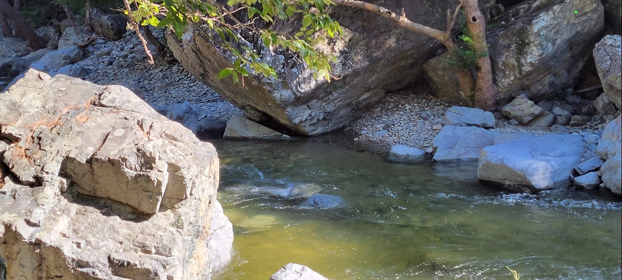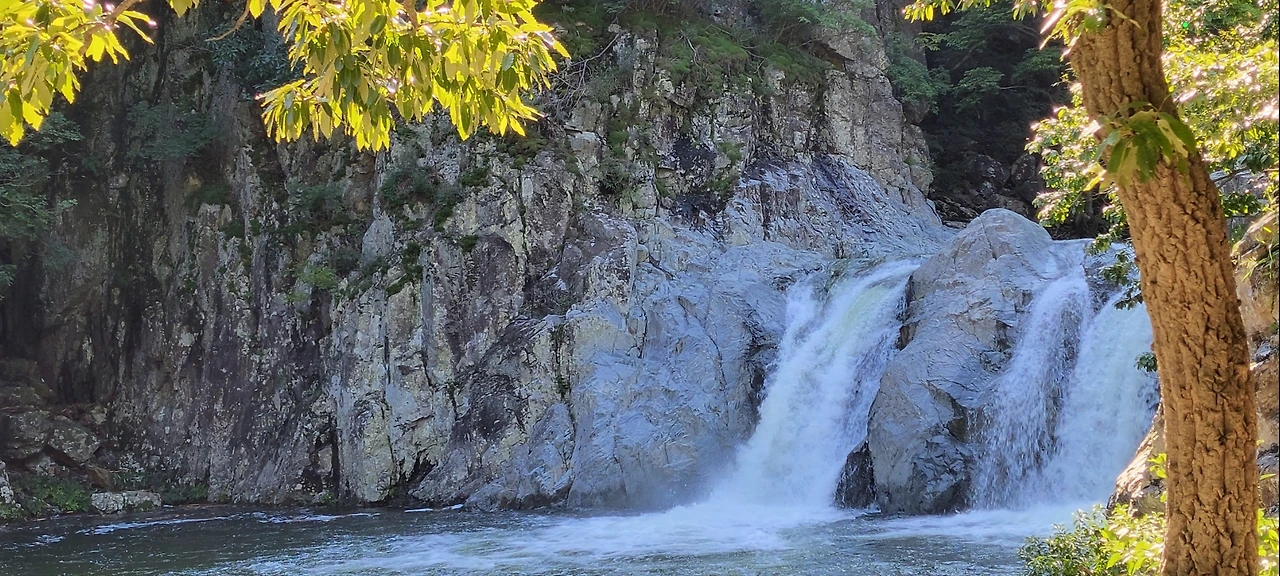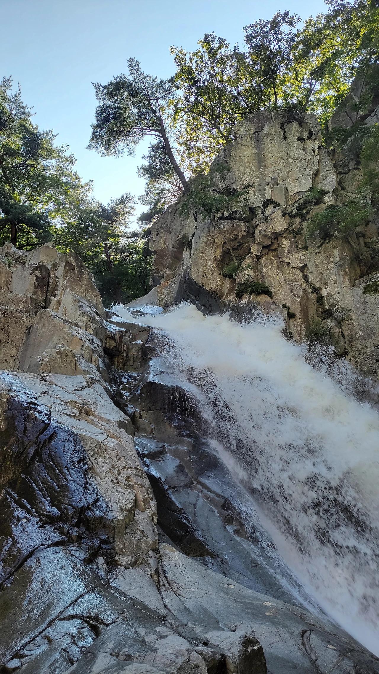 자연스럽게 형성된 침식지형의 폭포와 용소들이