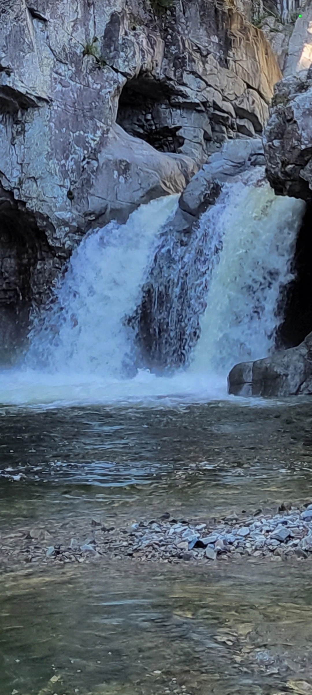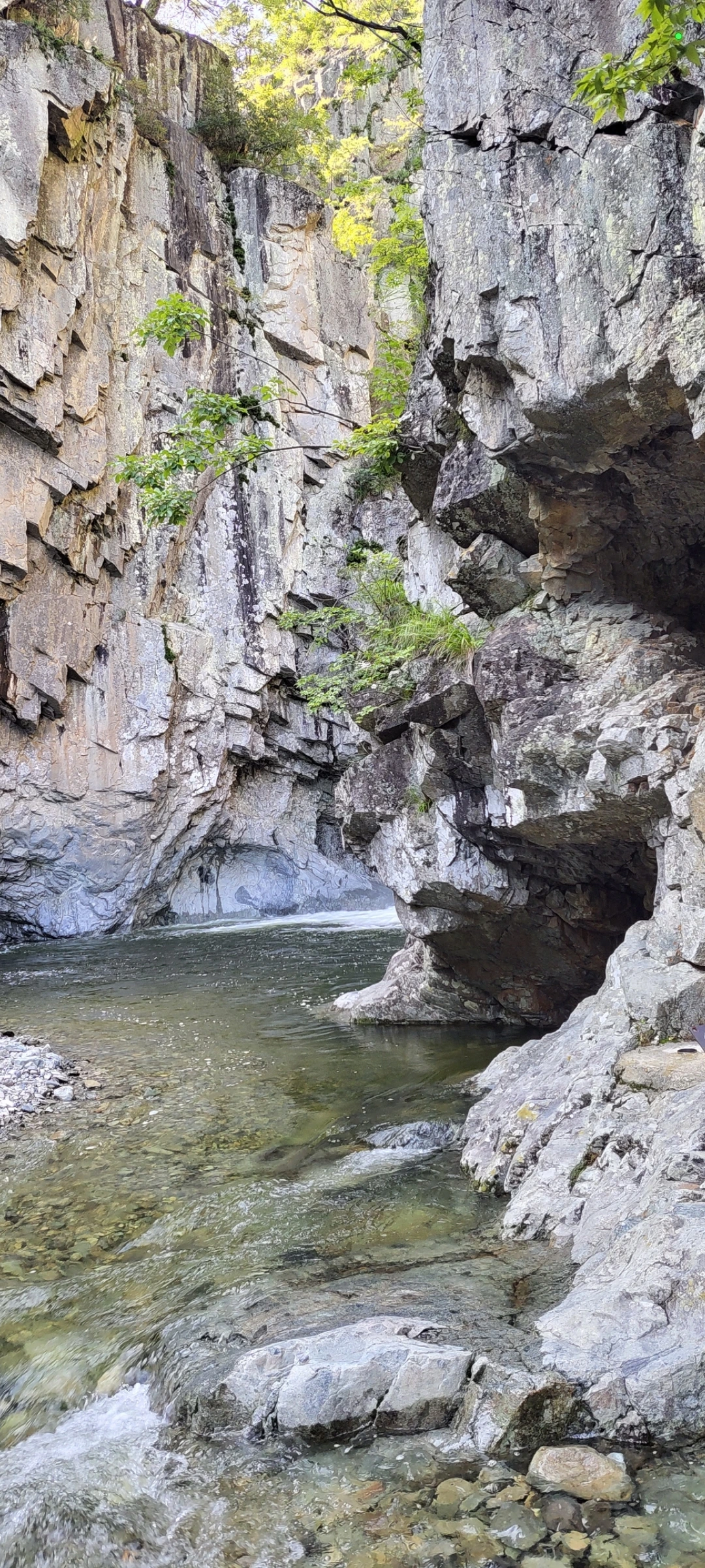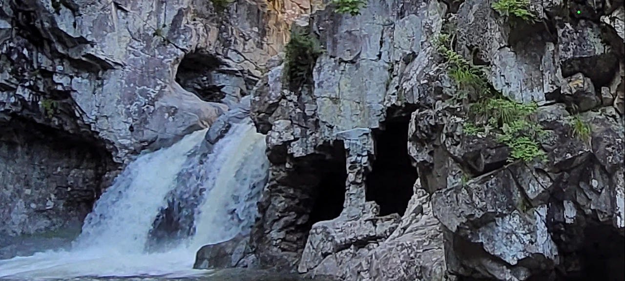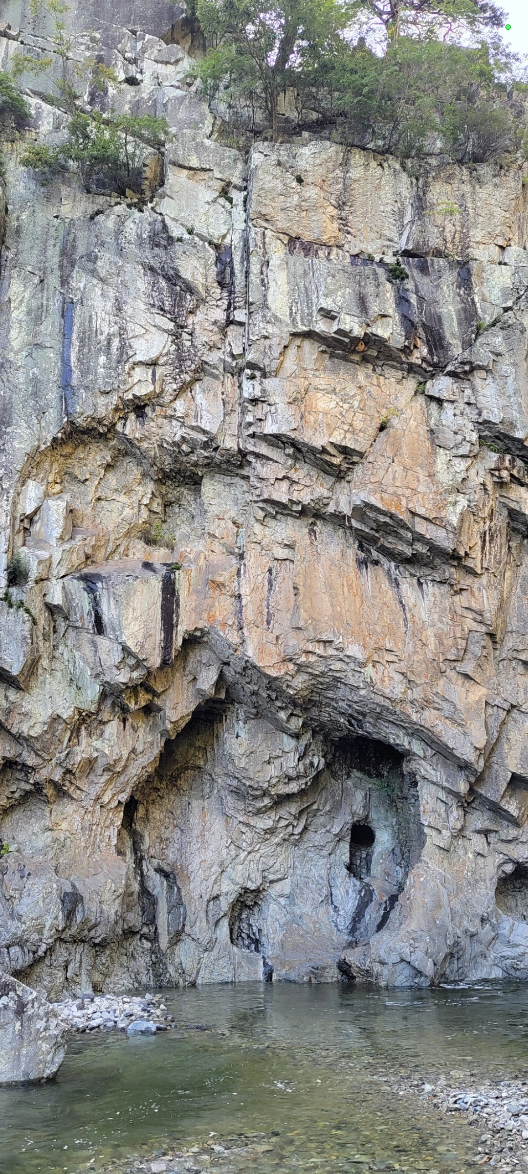 자연스럽게 형성된 침식지형의 폭포와 용소들이