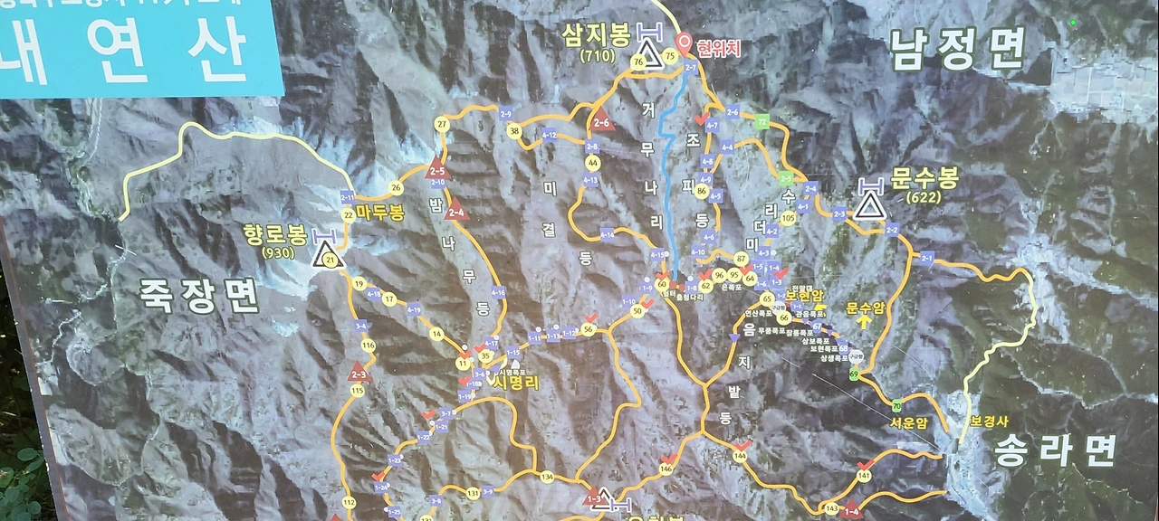 *보경사~문수봉~삼지봉~가무나리~선일대~관음폭포~연산폭포~무풍폭포~상생폭포~원점회귀 총 13.6km 5시간 20분 걸었습니다.
