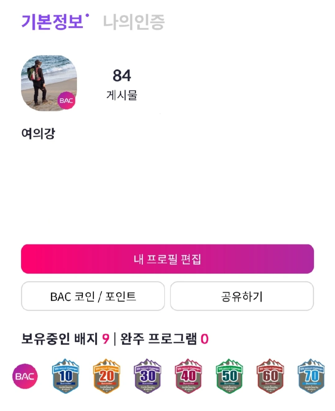 혼자서 21회, 친구 선후배 지인과 49회 올랐습니다.