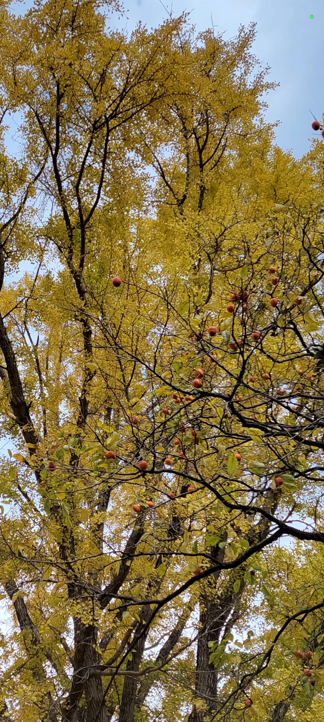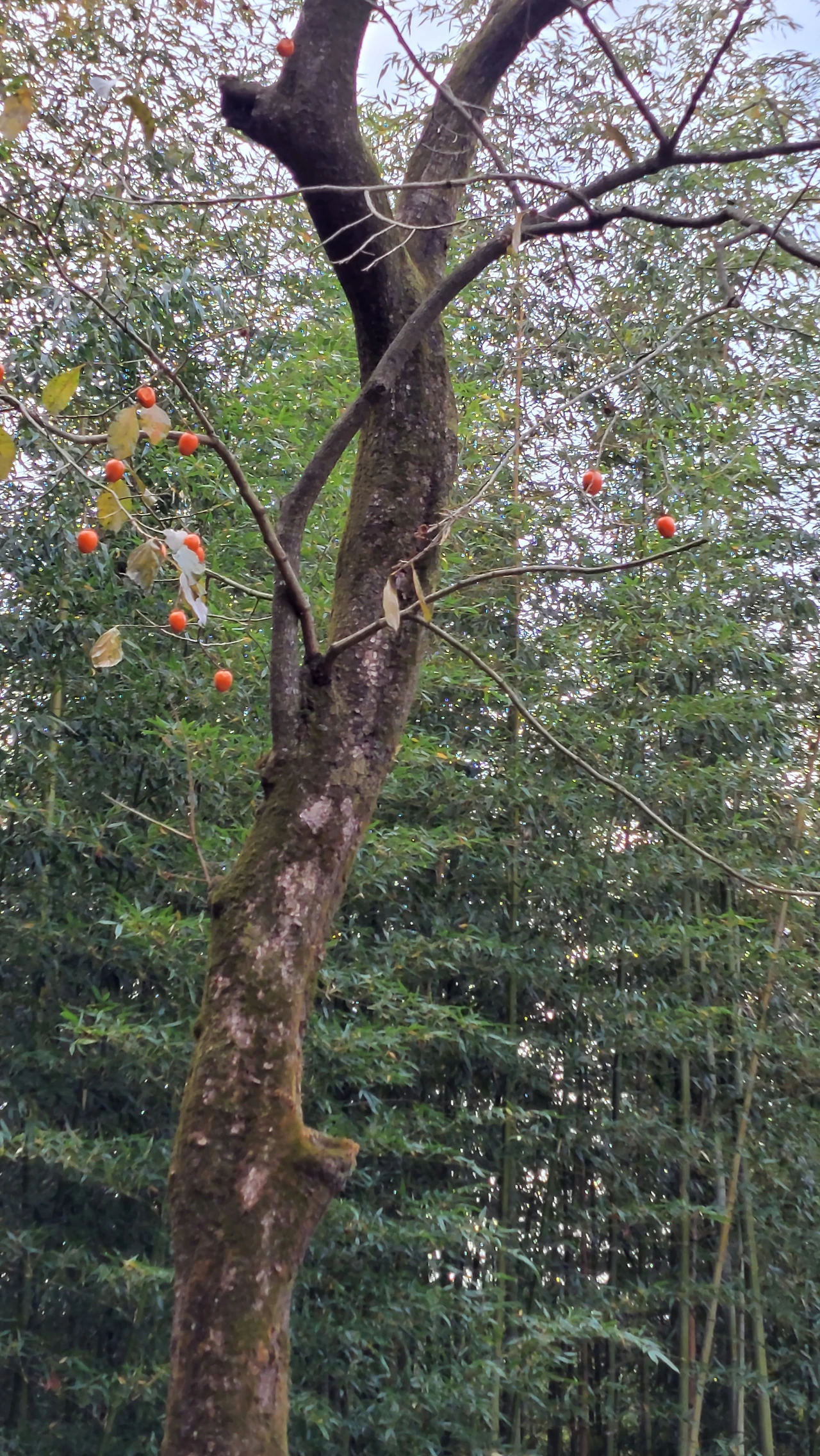 나뭇잎 떨구고 까치 식량 몇 알 남긴 감나무