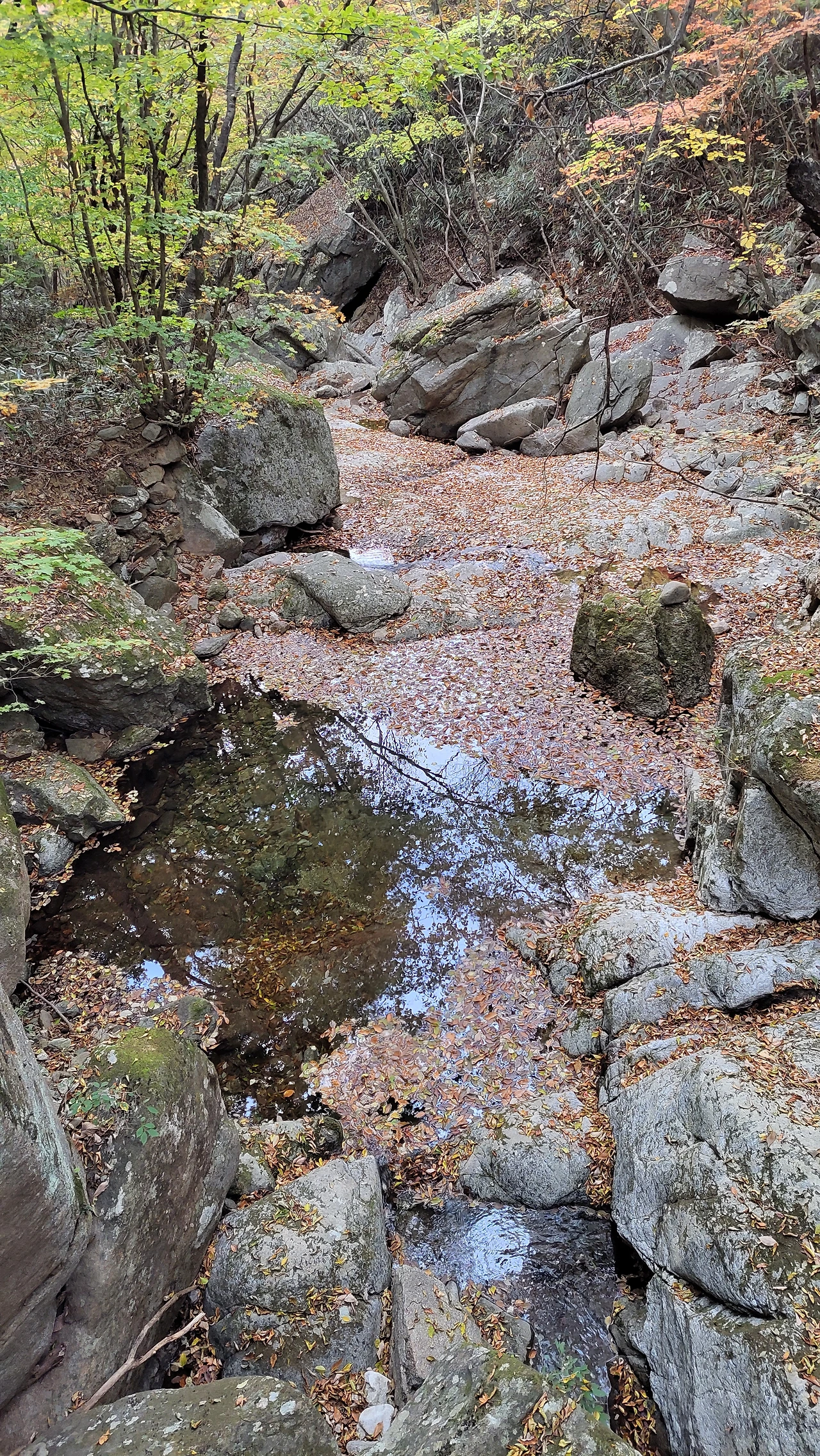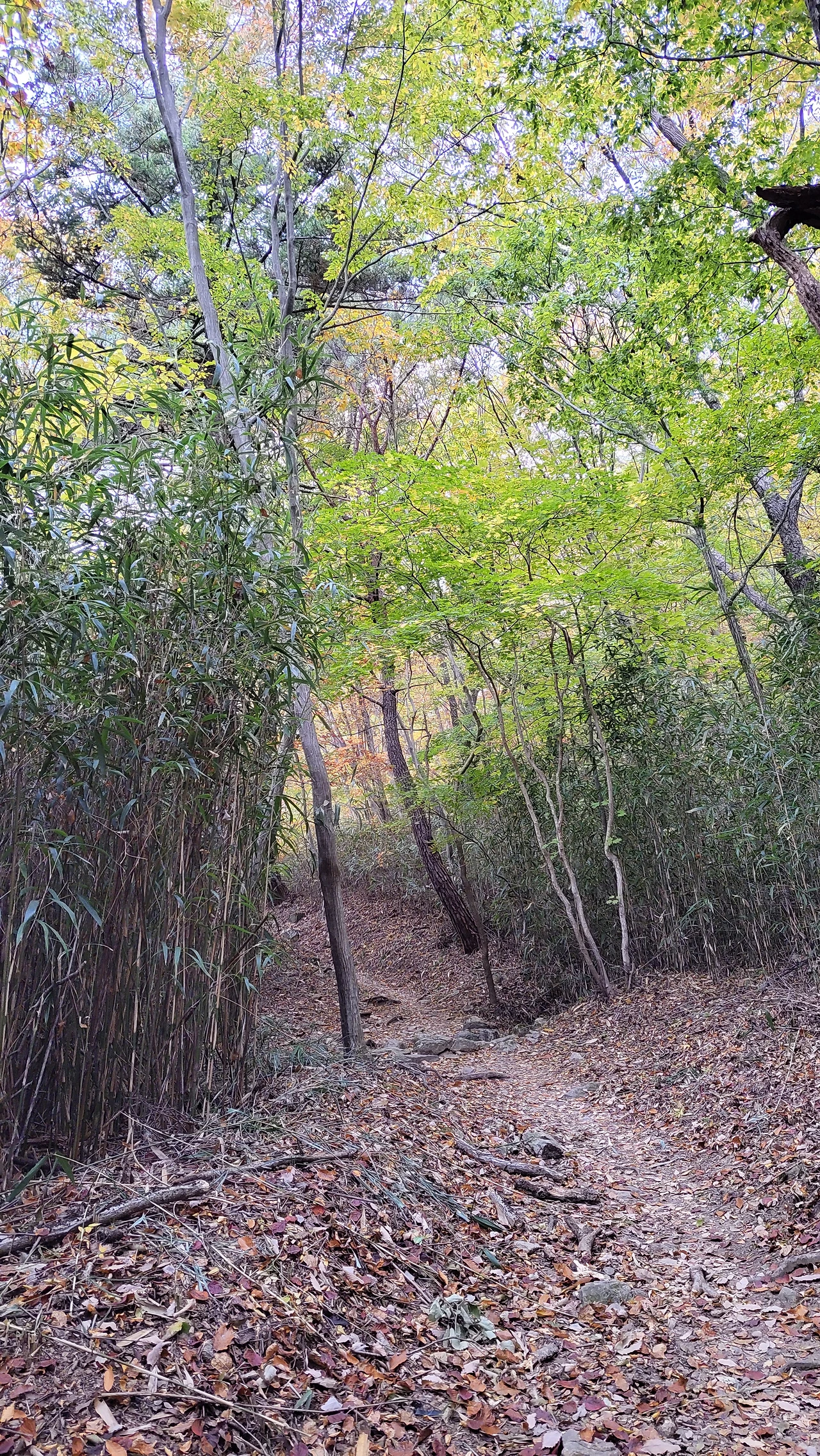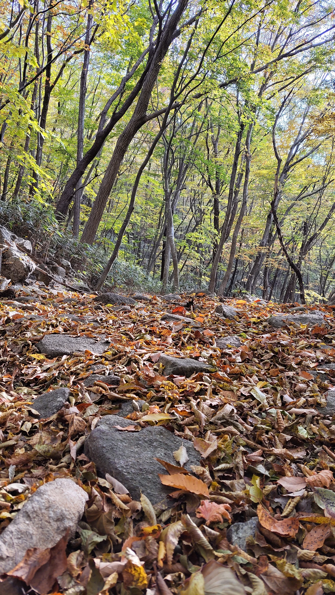 단풍과 낙엽 감상하며 한참을 내려