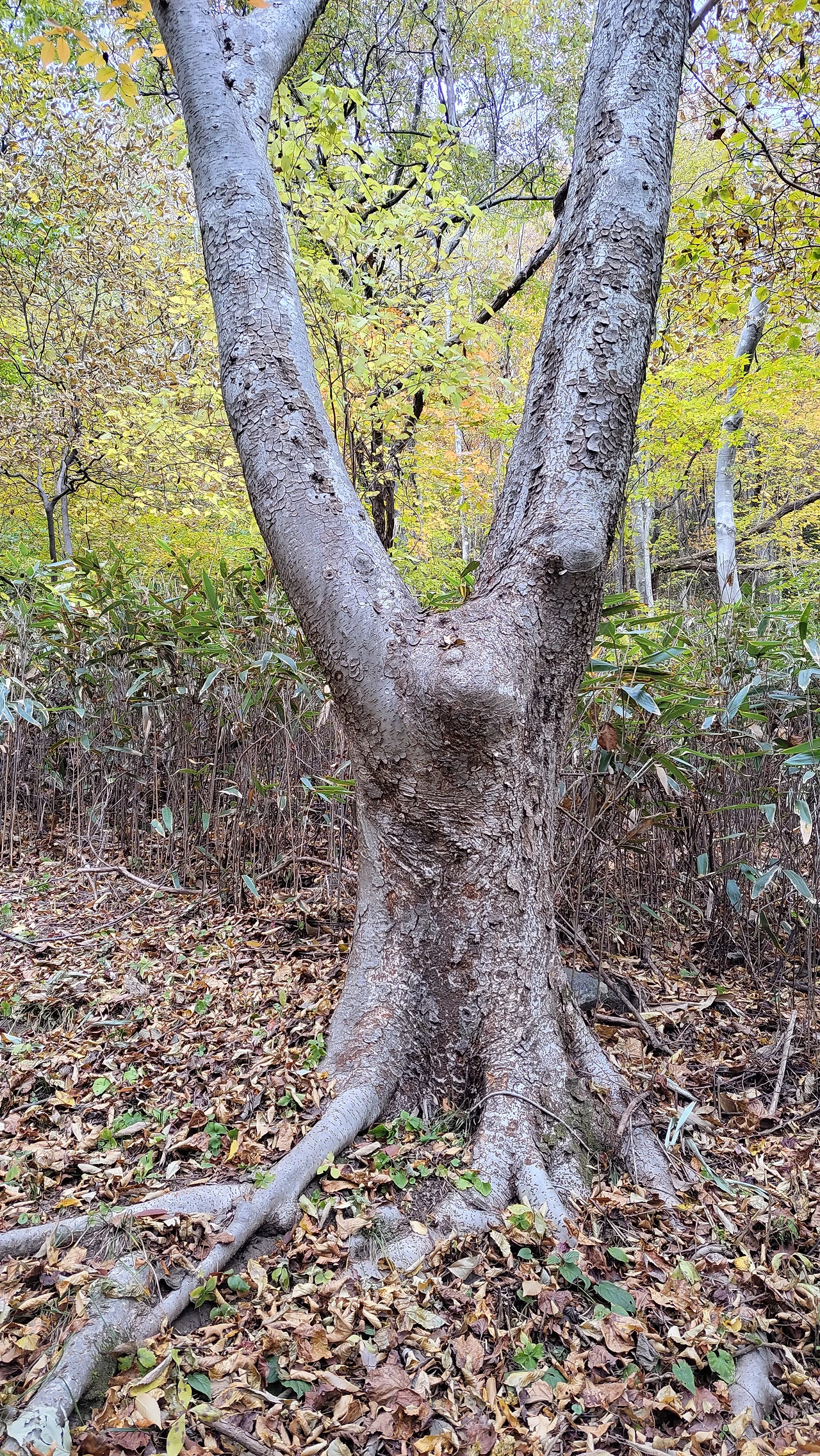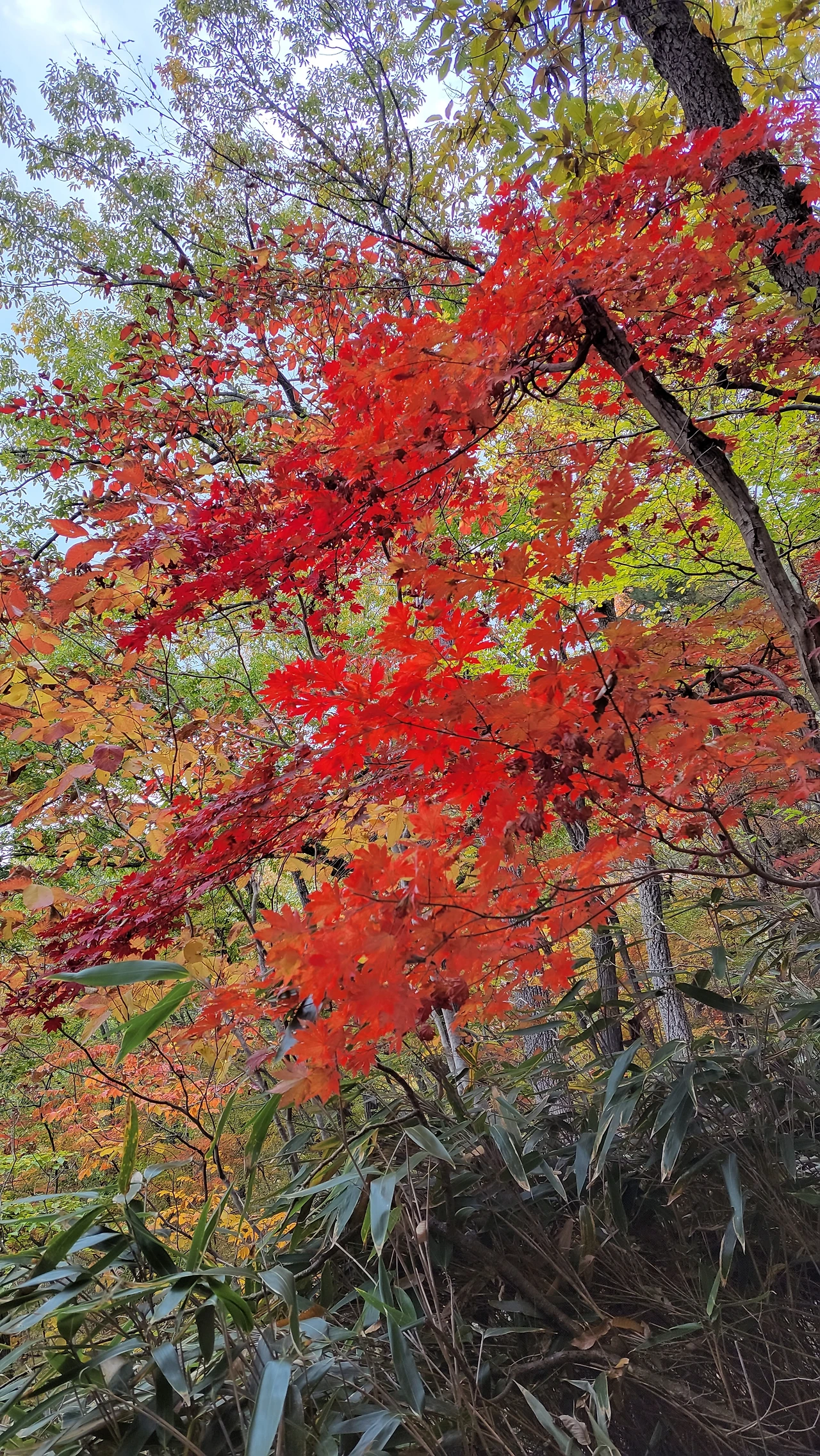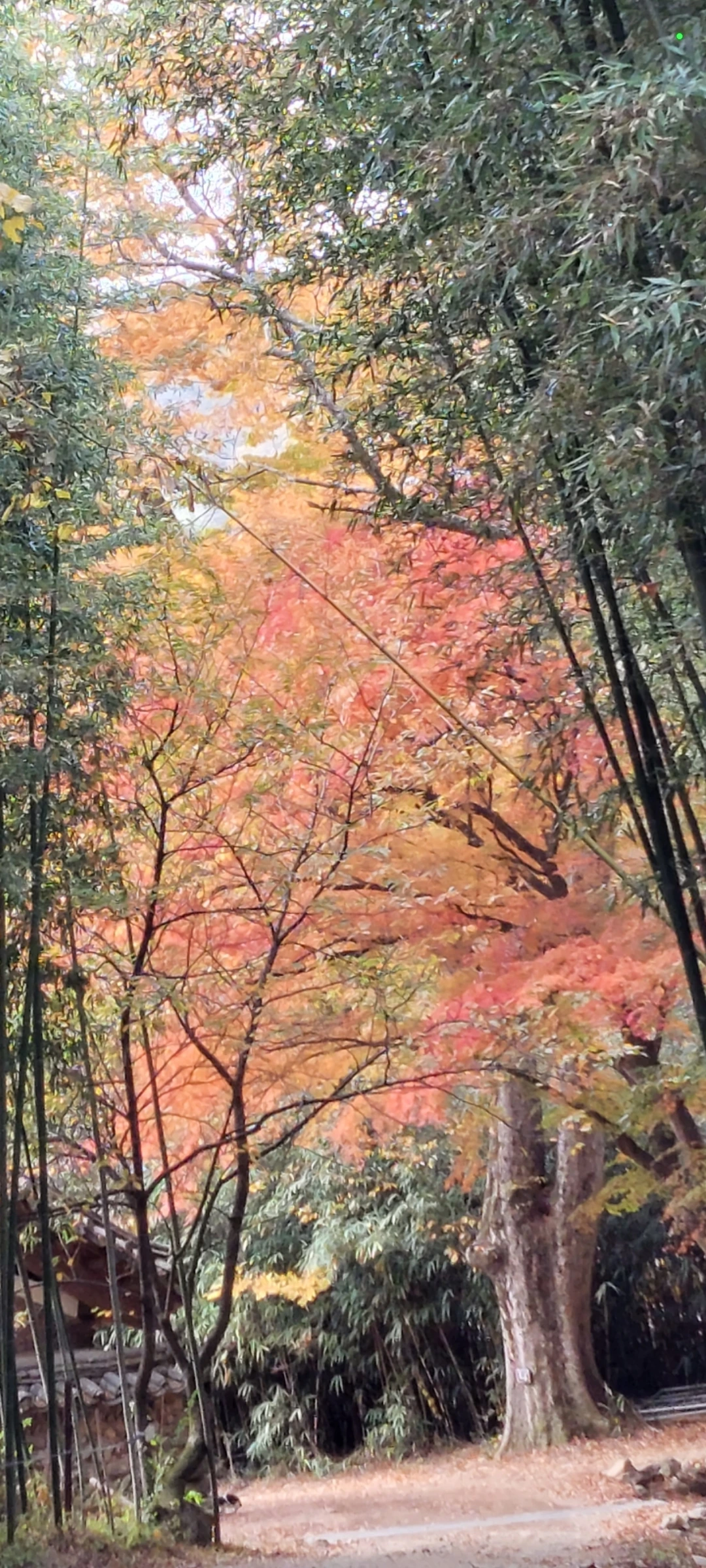 사철 푸른 대나무와 붉노란 단풍나무