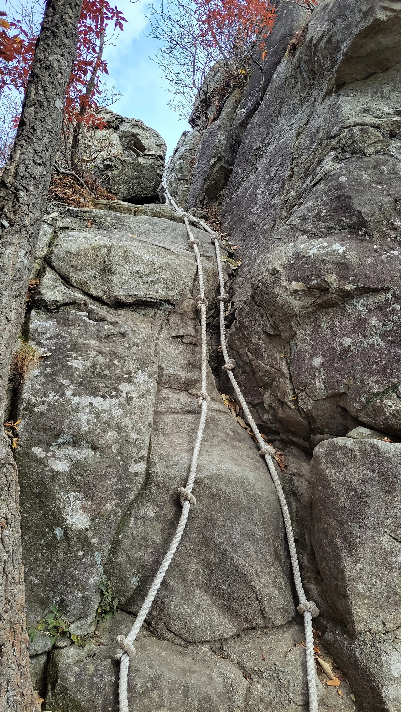 밧줄 잡고 기다시피 이어진 너덜길