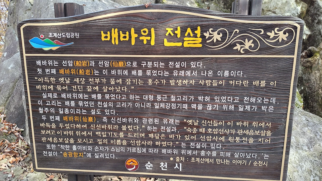 그래서 선암사(仙巖寺)가 선암(船岩)에서 유래되었다는 설도 있다지요.