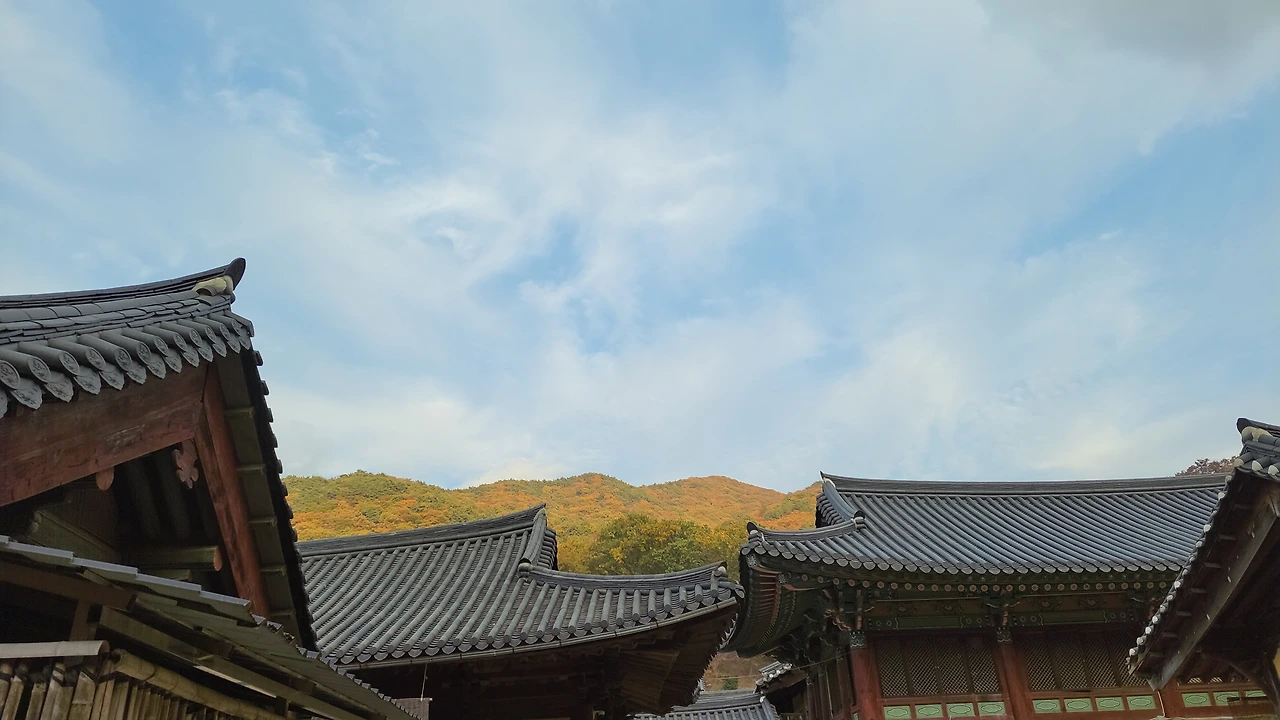 조계산과 어우러진 반듯반듯한 전각들
