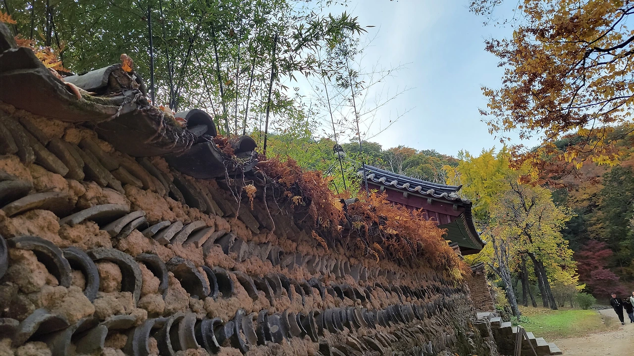 나지막한 송광사 담벼락 따라