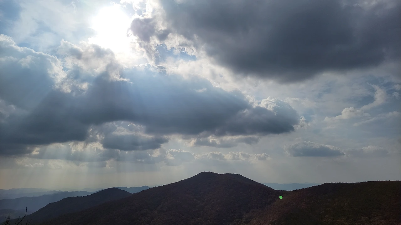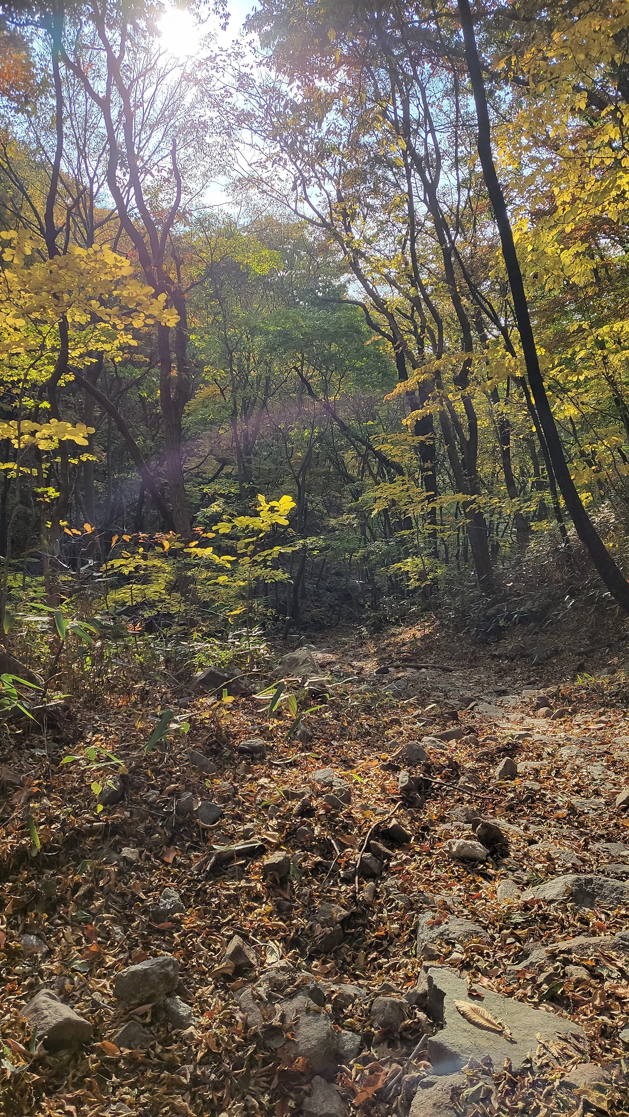 드디어 단풍 사이 하늘이 열리며