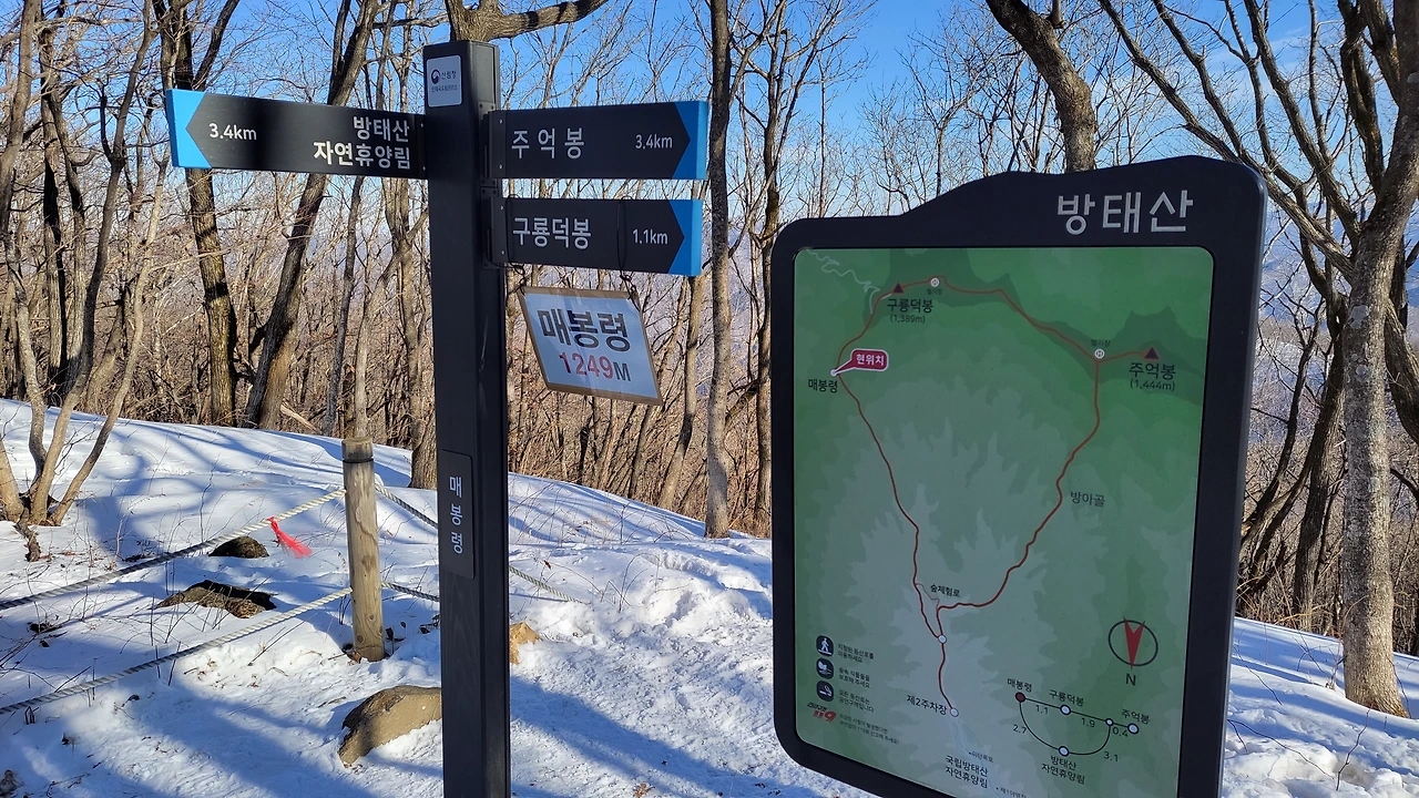 방태산 주억봉과 구룡덕봉, 매봉령 사이론