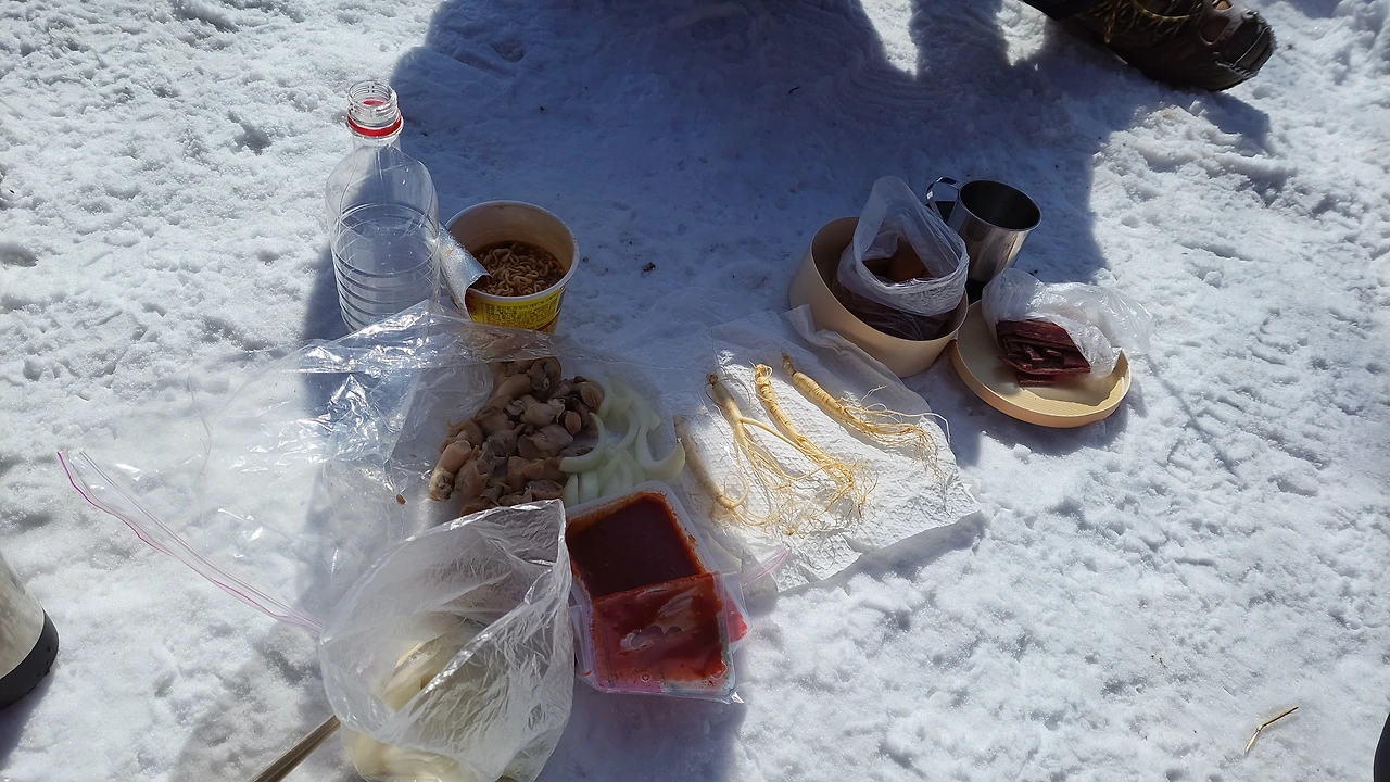 눈밭에 차려진 주안상 보니 감탄이 절로 나왔습니다.