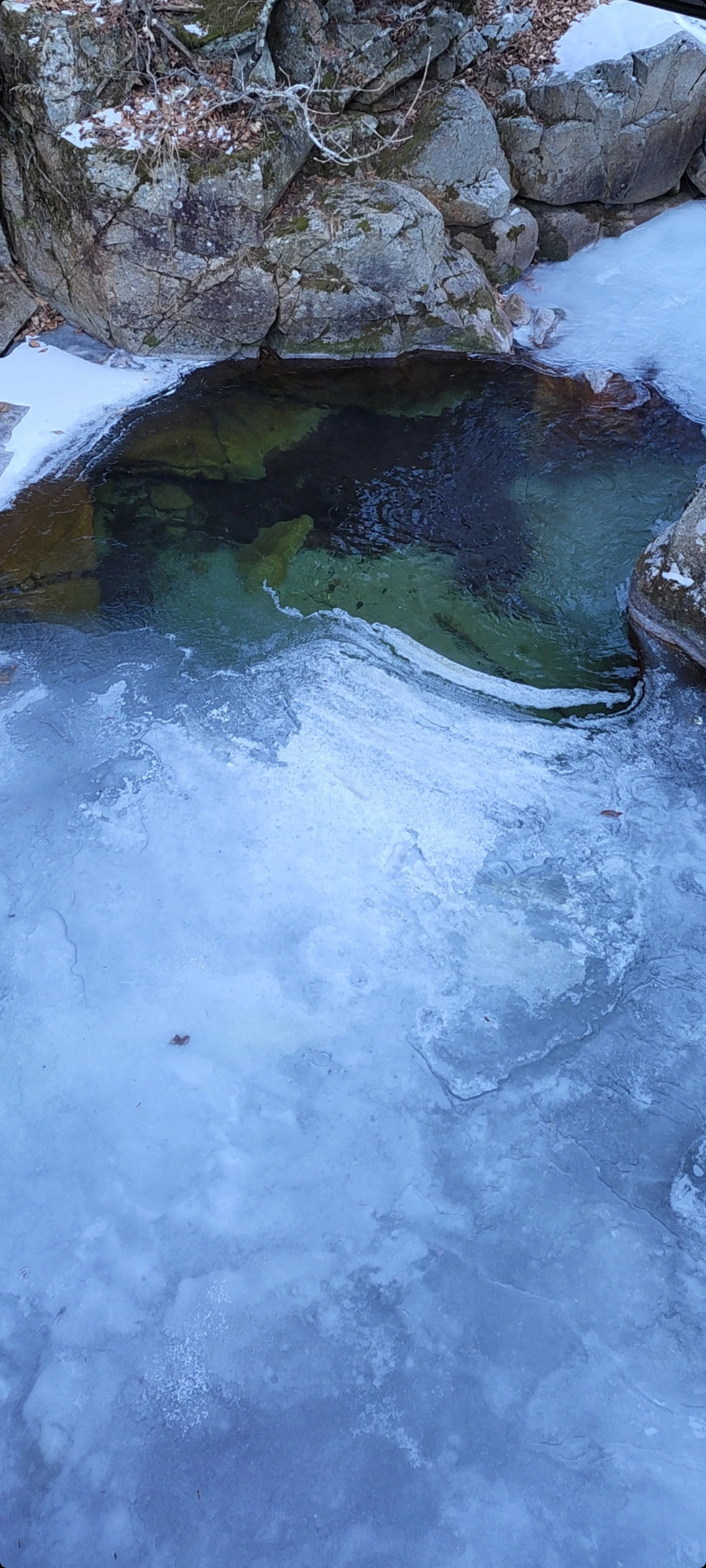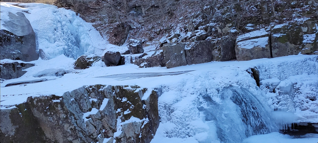 마당바위 지나 얼어붙은 '2단 폭포'와