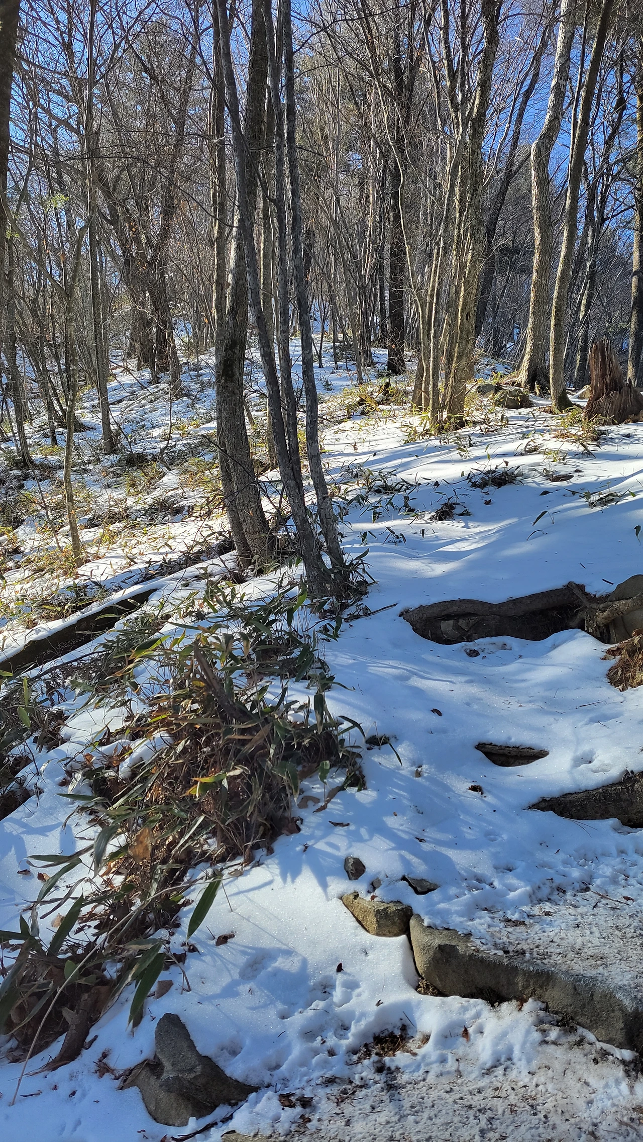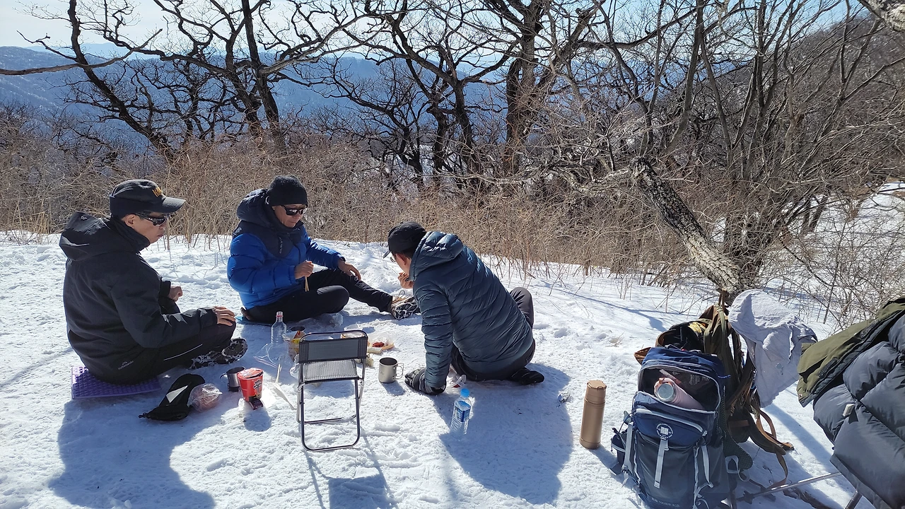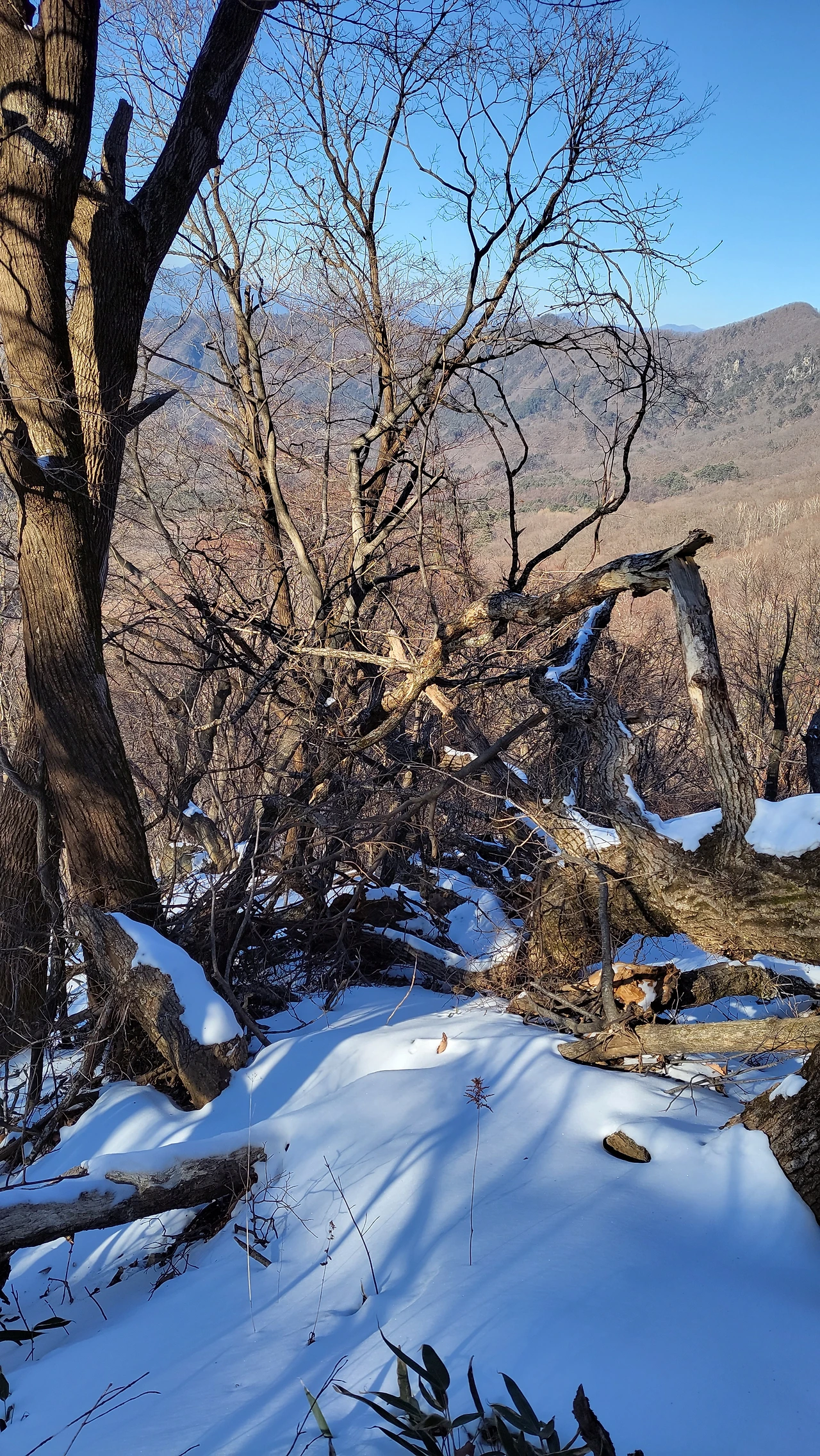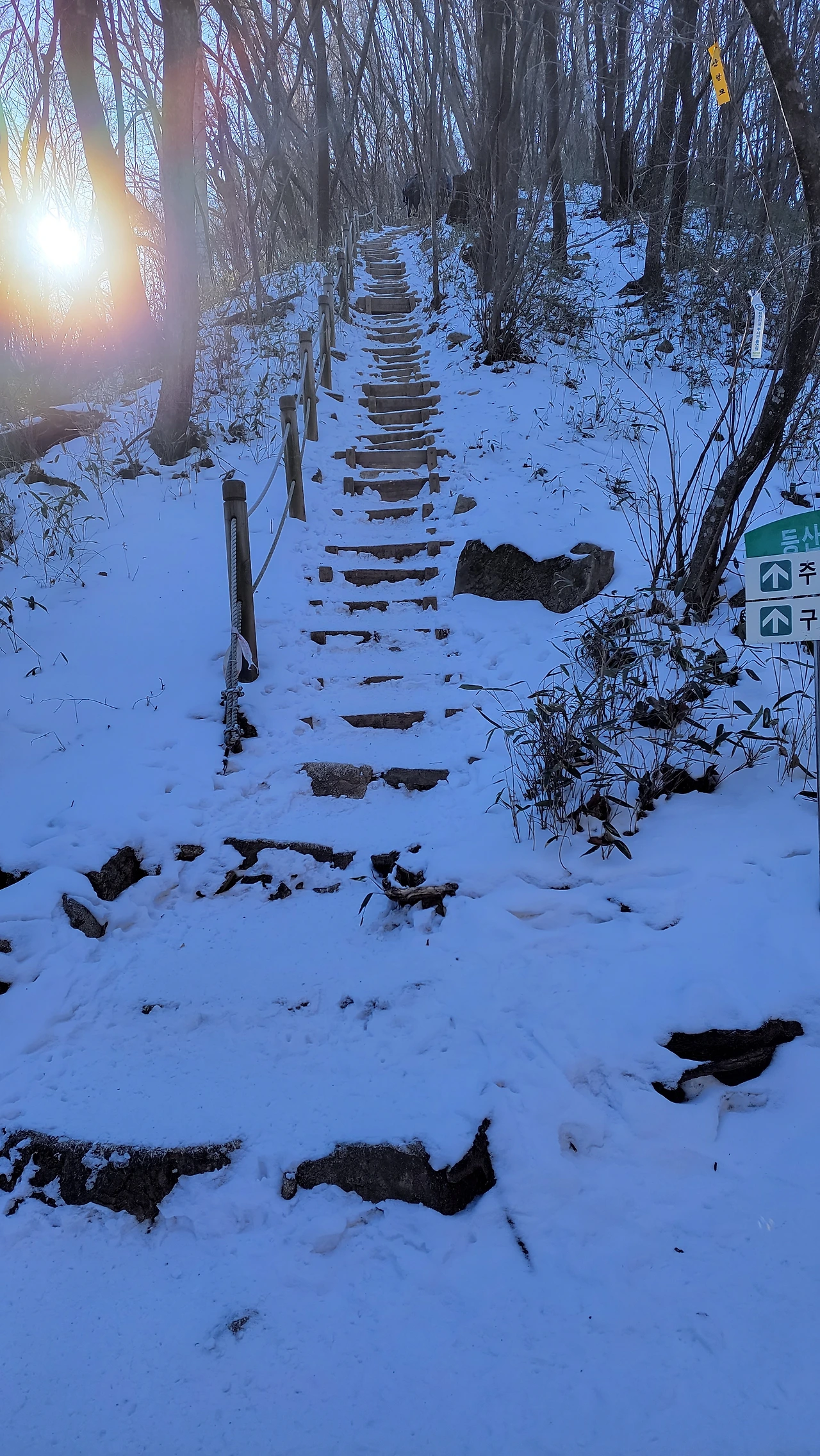 숲엔 눈 쌓여 아이젠 착용해야 했고